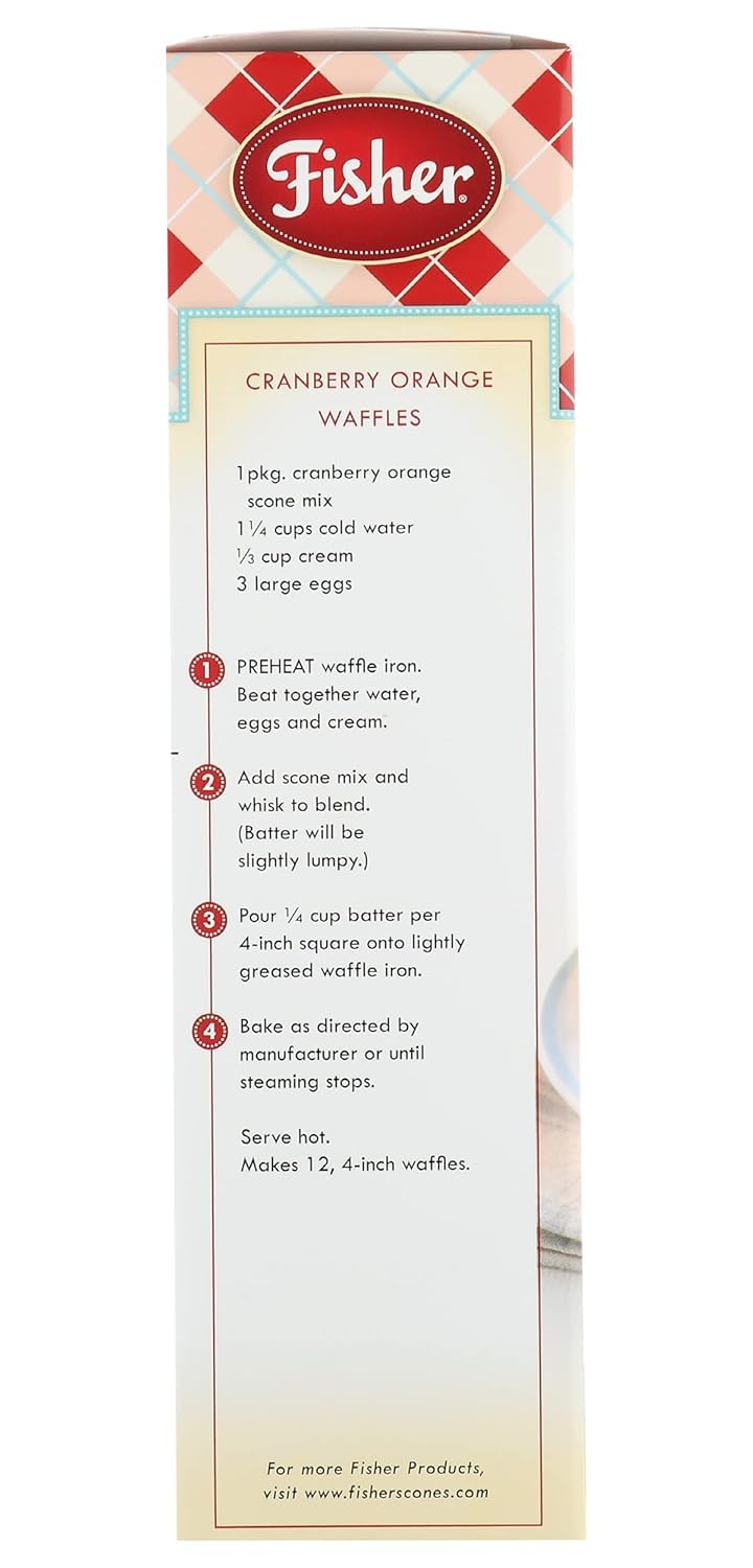 Q: Are Fisher scones suitable for special diets?A: Fisher Cranberry Orange Scone Mix is made from simple ingredients and does not contain any artificial preservatives. However, please check the packaging for allergen information to ensure it fits your dietary needs.