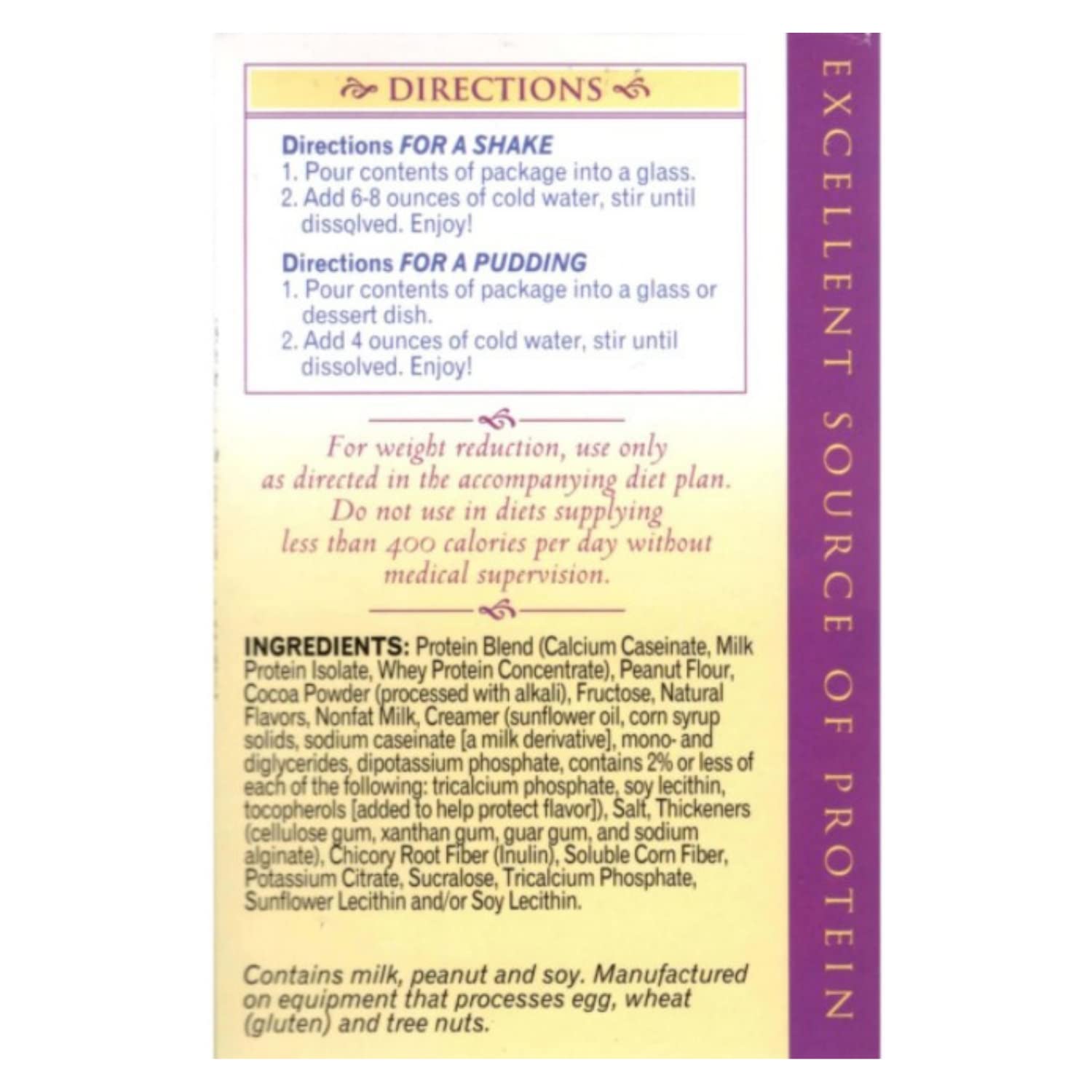 Directions:&Nbsp;For A Shake:Place The Contents Of One Packet Into A (10 Oz) Glass, Shaker Cup, Or Blender.Add 8 Ounces Of Cold Water And Stir Or Shake Vigorously Until Dissolved. Nonfat Milk May Be Substituted For Water.&Nbsp;For A Pudding:Place The Contents Of One Packet Into A Small Cup Or Bowl.Add 4 Ounces Of Cold Water And Mix Thoroughly With A Spoon Until Smooth And Serve. Pudding Thickens Upon Standing. Nonfat Milk May Be Substituted For Water.&Nbsp;