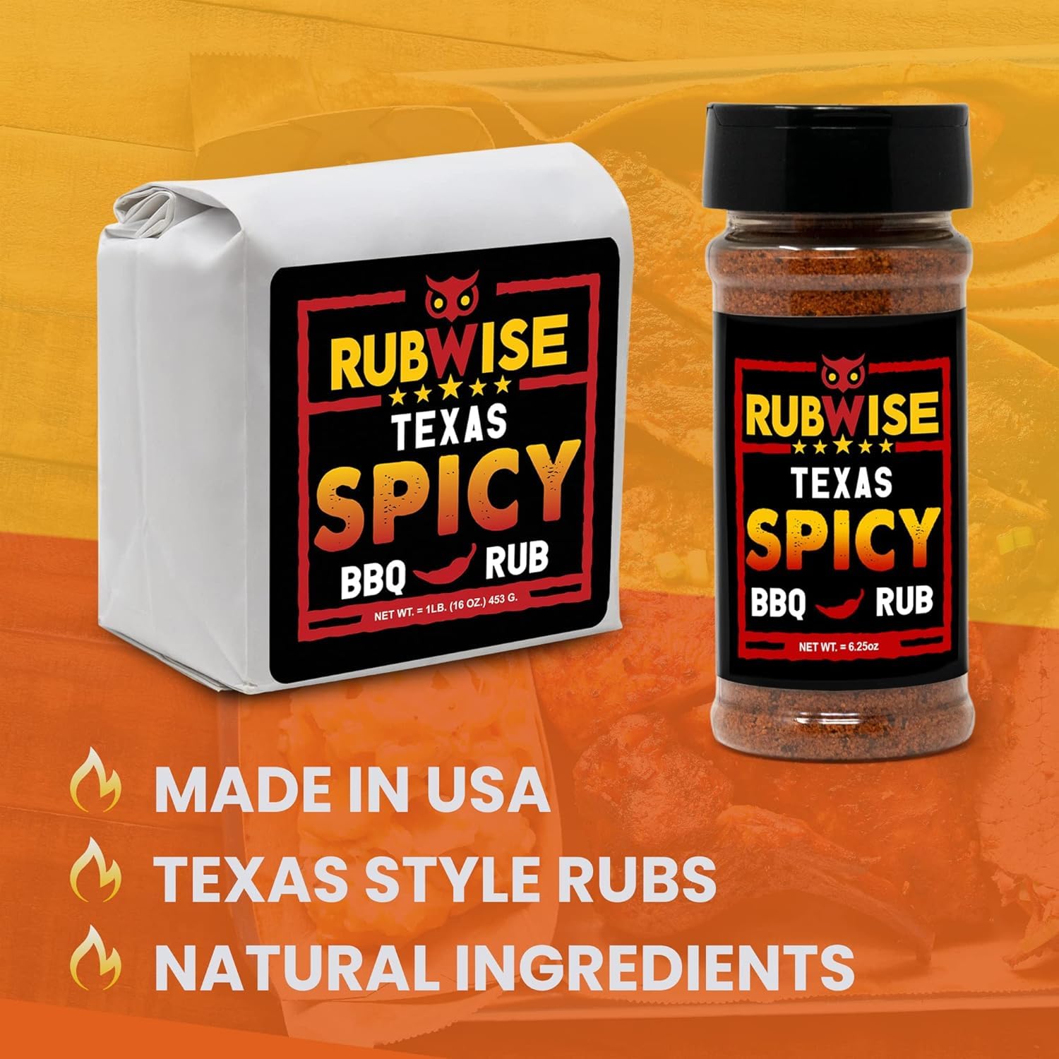 - Q: What is the size of the Spicy BBQ Rub package? A: The Spicy BBQ Rub by RubWise comes in a six point twenty-five ounce package, which is suitable for multiple uses depending on how much meat you are seasoning.