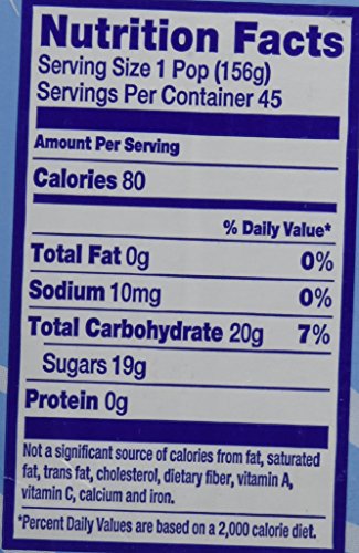 Q: What is the packaging size of Fla-vor-ice Freeze Pops?A: Each pack of Fla-vor-ice Freeze Pops contains 45 pops, and each pop is 5.5 ounces in size.