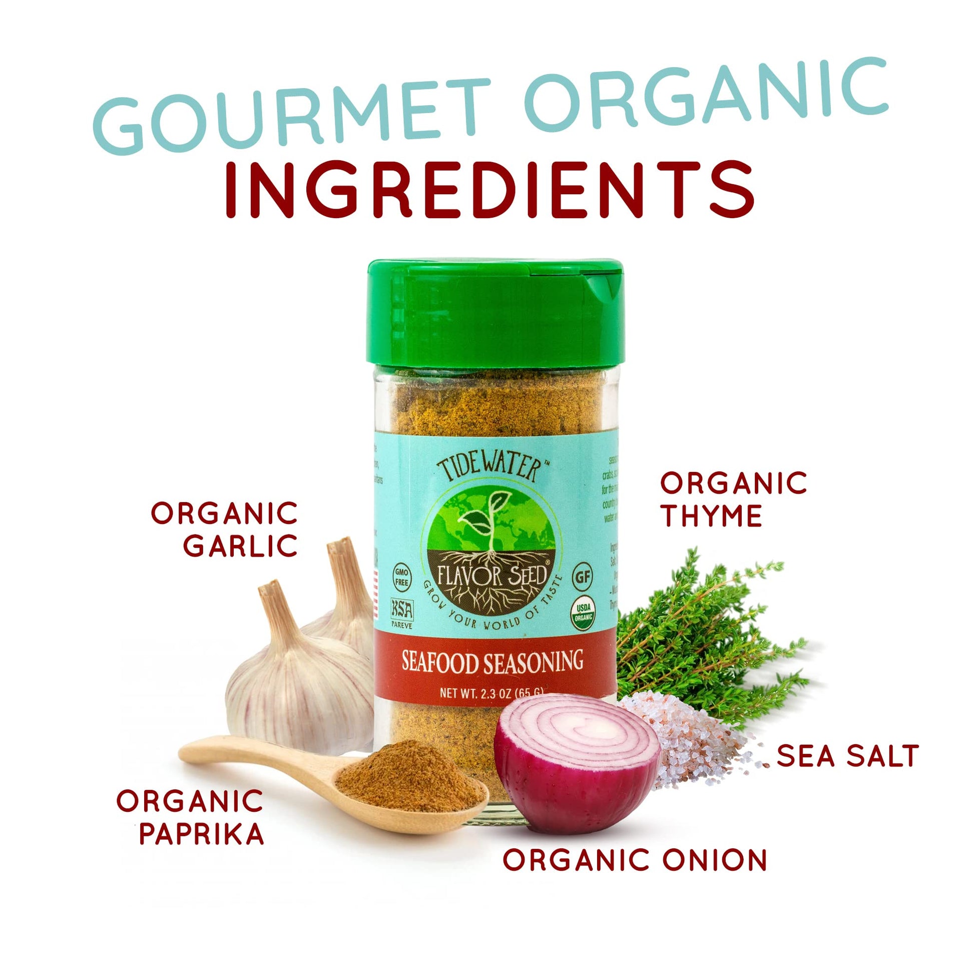 - Q: What makes Tidewater seasoning different from other seafood seasonings? A: Tidewater seasoning is unique due to its blend of fresh organic ingredients, no added MSG or preservatives, and its traditional recipe inspired by coastal cuisine, ensuring a balanced flavor that is not too spicy or salty.
