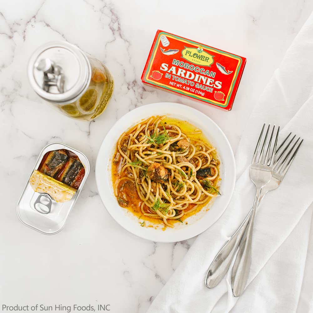 Flower Brand Moroccan Sardines In Tomato Sauce Is Great For Any Occasion. 100% Wild-Caught When Fully Mature At Just 9.0Cm To 13.5Cm Long, Fished In The Pristine, Icy Moroccan Fjords And Coastal Waters Of Norway. Packed In Bpa-Free Aluminum Cans. Finest Quality, Tiny Brisling Sardines In Top-Grade Extra Virgin Olive Oil. Wild-Caught, This Product Of Morocco Provides An Excellent Source Of Calcium And Protein, And Is Available In A Variety Of Flavors.Enjoy This Anytime And Anywhere. Try On A Sandwich, In A Salad, Or With Fresh Pasta. The Superfood From The Sea.