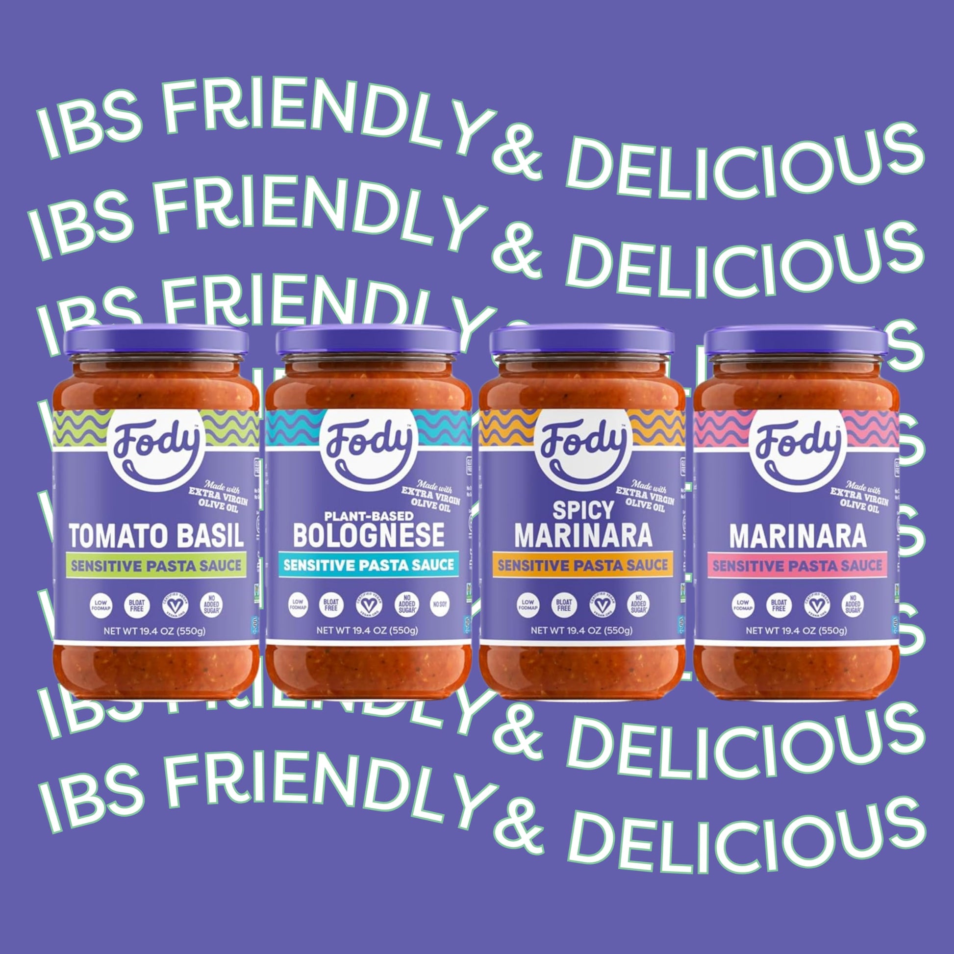 Fody Foods Pasta Sauce Variety Pack, 19.4 Oz (Pack of 4), Garlic and Onion Free, Low FODMAP Certified, Gut & IBS Friendly, Vegan
