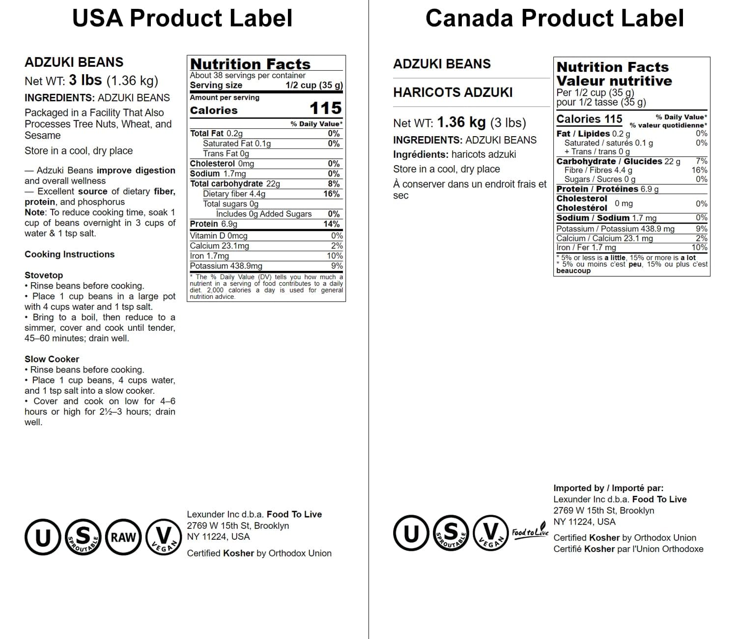 Q: Are Food to Live Adzuki Beans vegan and kosher?A: Yes, Food to Live Adzuki Beans are both vegan and kosher certified, making them suitable for a wide range of dietary preferences.