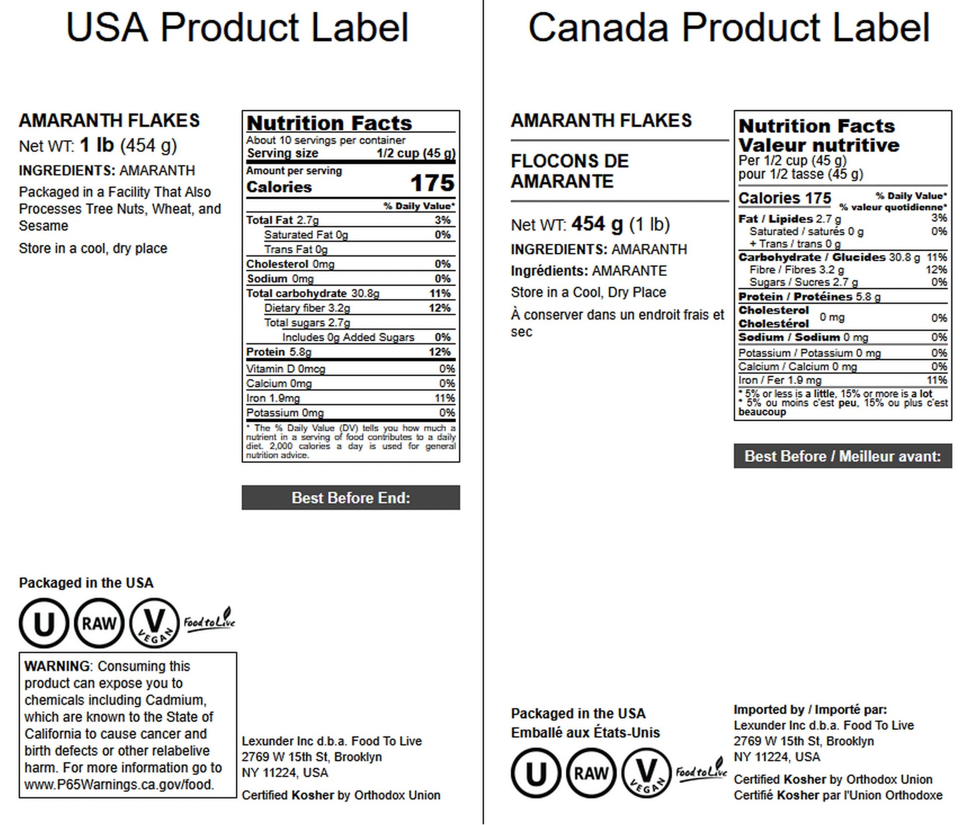 - Q: What are the nutritional benefits of Food to Live Amaranth Flakes? A: Food to Live Amaranth Flakes are highly nutritious and an excellent source of protein, containing antioxidants, dietary fiber, and essential minerals such as Manganese, Magnesium, Copper, Selenium, Phosphorus, Iron, and Vitamin B6. They are low in sodium, saturated fat, and cholesterol, making them a healthy choice for any diet.