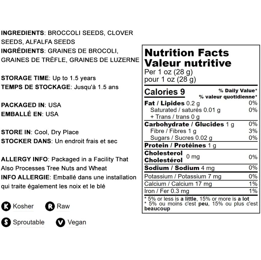 - Q: What are the benefits of sprouting the Antioxidant Mix of Sprouting Seeds? A: Sprouting the Antioxidant Mix of Sprouting Seeds provides enhanced nutritional benefits such as increased levels of vitamins, minerals, and antioxidants. This mix is a great source of Vitamin C, Vitamin A, Iron, Calcium, Protein, and Dietary Fiber, making it a nutritious addition to your meals.