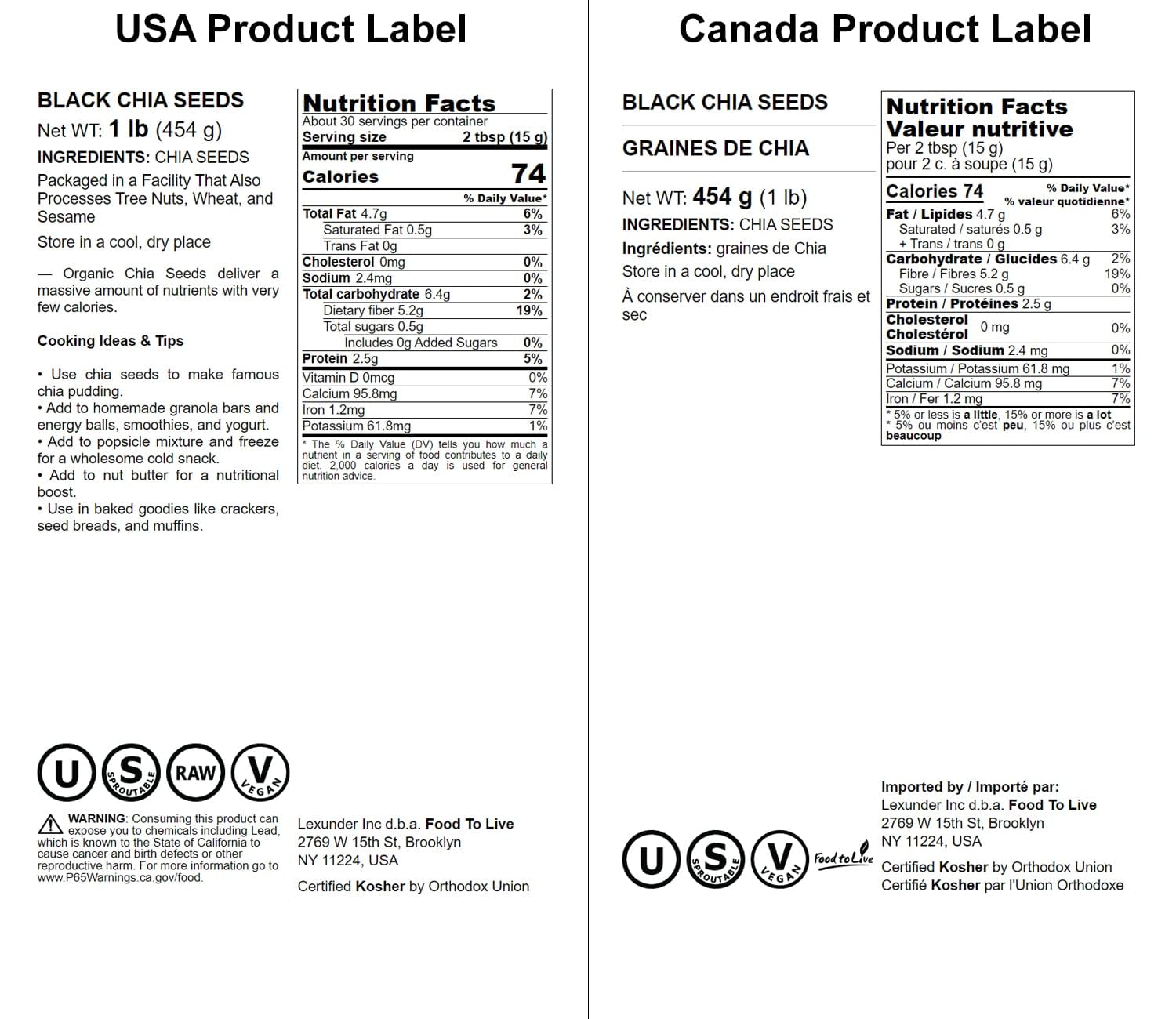 Q: Are Food to Live black chia seeds vegan and kosher?A: Yes, Food to Live black chia seeds are 100% pure, natural, vegan, and kosher certified. They contain no artificial additives, preservatives, or chemicals, making them a wholesome choice for all dietary preferences.