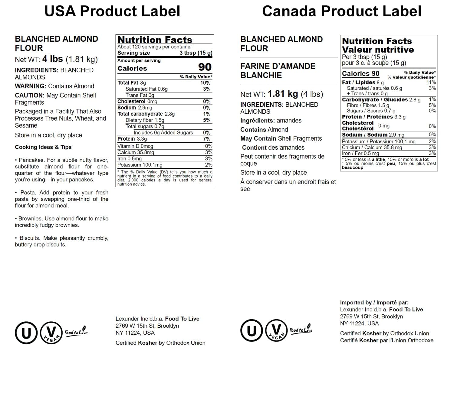- Q: Is Food to Live's blanched almond flour suitable for a vegan diet? A: Absolutely! Food to Live's blanched almond flour is raw, vegan, and free from animal products, making it a perfect ingredient for vegan baking and cooking.