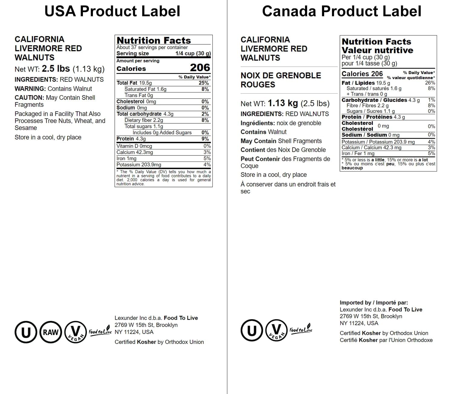Nutritious: Raw Red Walnuts (Halves & Pieces) From Food To Live Give You A Boost Of Vitamins And Minerals. | 100% Natural: Food To Live Products Are Completely Free From Any Additives. | Delicious: Red Walnuts Taste Fantastic! You Can Use Them In Desserts And Salads, Or Eat Them Raw. | Rare And Exceptional: Red Walnuts Are Extremely Rare. These Nuts Have Been Grown In California. Food To Live Is Able To Offer Them For A Reasonable Price, In Bulk.