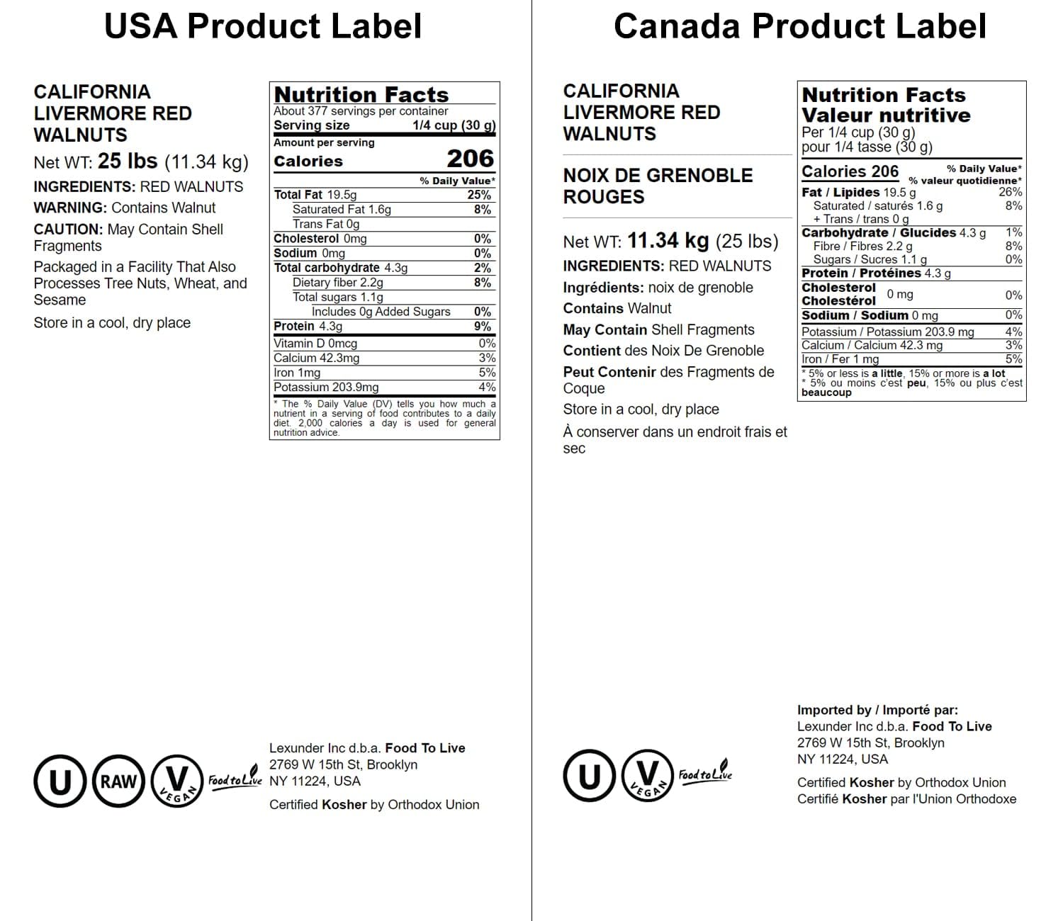 - Q: Are Food to Live red walnuts suitable for people with dietary restrictions? A: Yes, Food to Live red walnuts are 100% natural, unsalted, and free from additives, making them suitable for various dietary restrictions, including kosher diets. They are a great option for those looking for healthy snack alternatives.