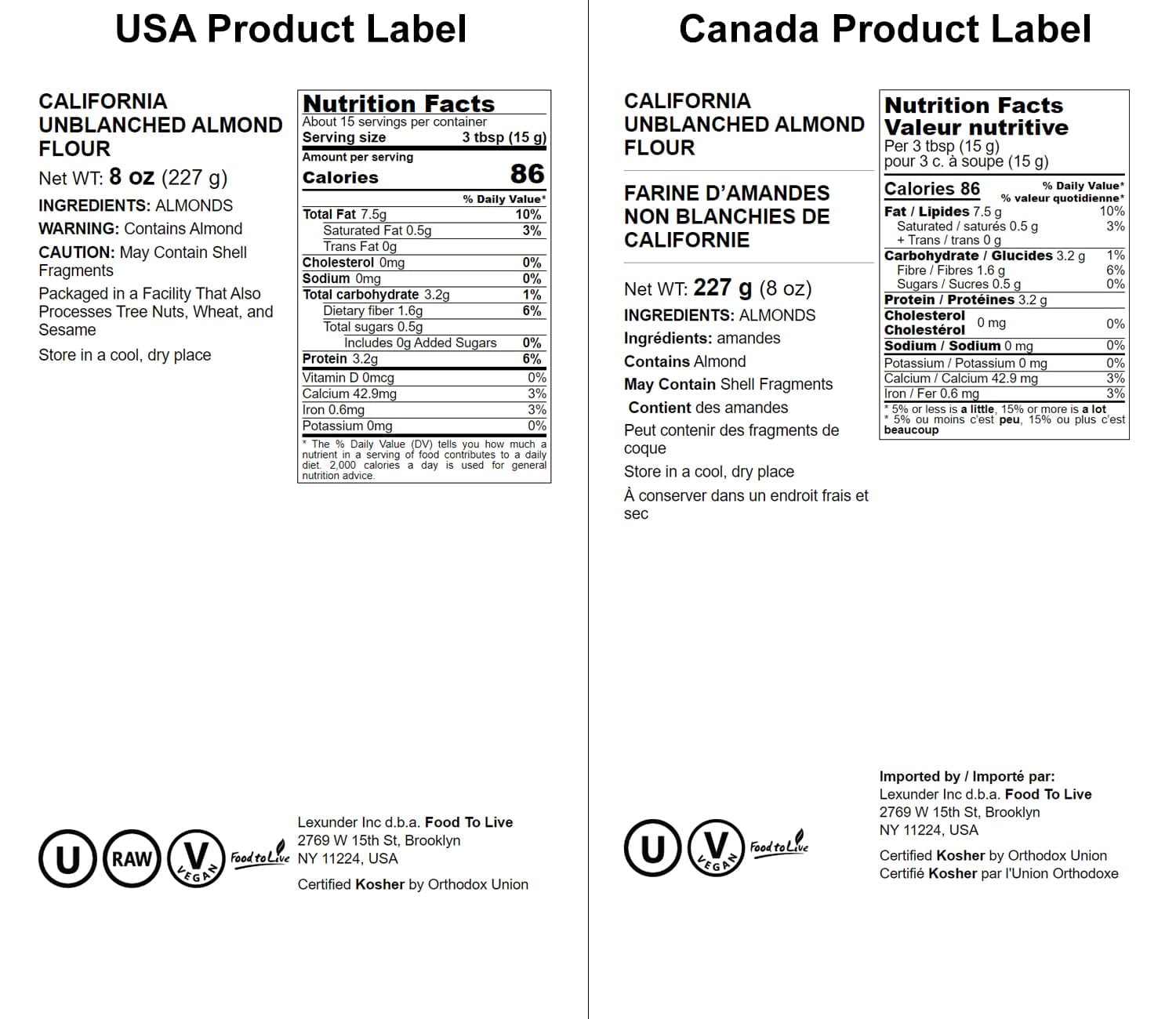 Q: Is Food to Live California Unblanched Almond Flour Kosher?A: Yes, this almond flour is certified Kosher, ensuring it meets the dietary requirements for those who follow Kosher guidelines.