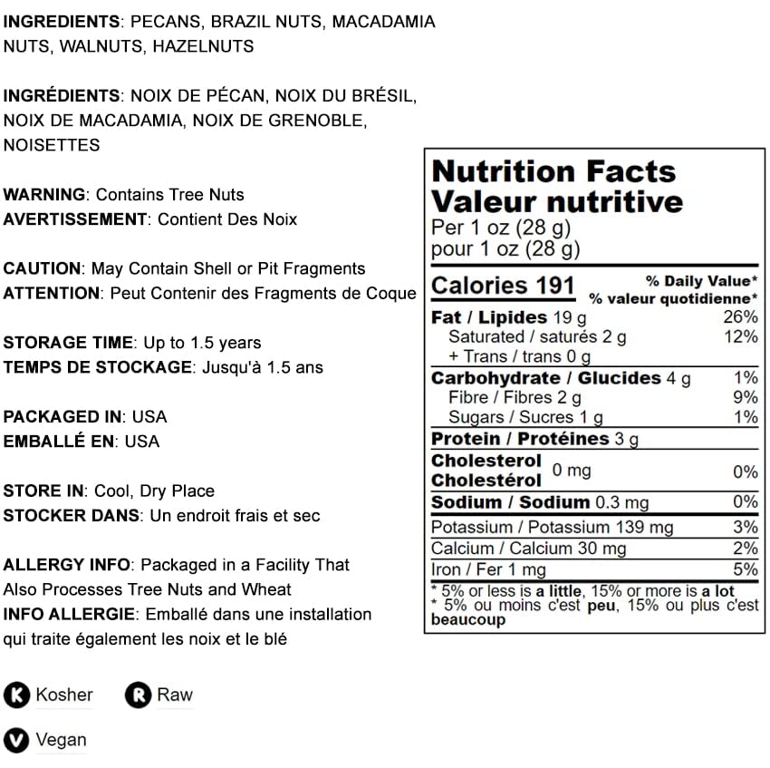 - Q: Are there any allergens in the Keto Nuts Mix? A: The Food to Live Keto Nuts Mix contains tree nuts, which may be allergens for some individuals. It is important to check the packaging for any allergen information and consult with a healthcare provider if you have nut allergies.
