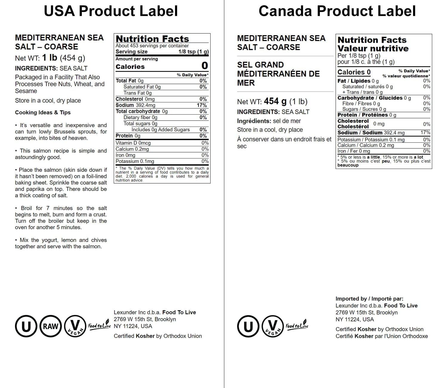 - Q: What are the health benefits of using Food to Live Mediterranean Sea Salt? A: Food to Live Mediterranean Sea Salt is lower in sodium compared to regular table salt, making it a healthier option for seasoning your meals. Additionally, its coarse grain contains traces of essential minerals that can enrich your dishes with flavor and nutrients.