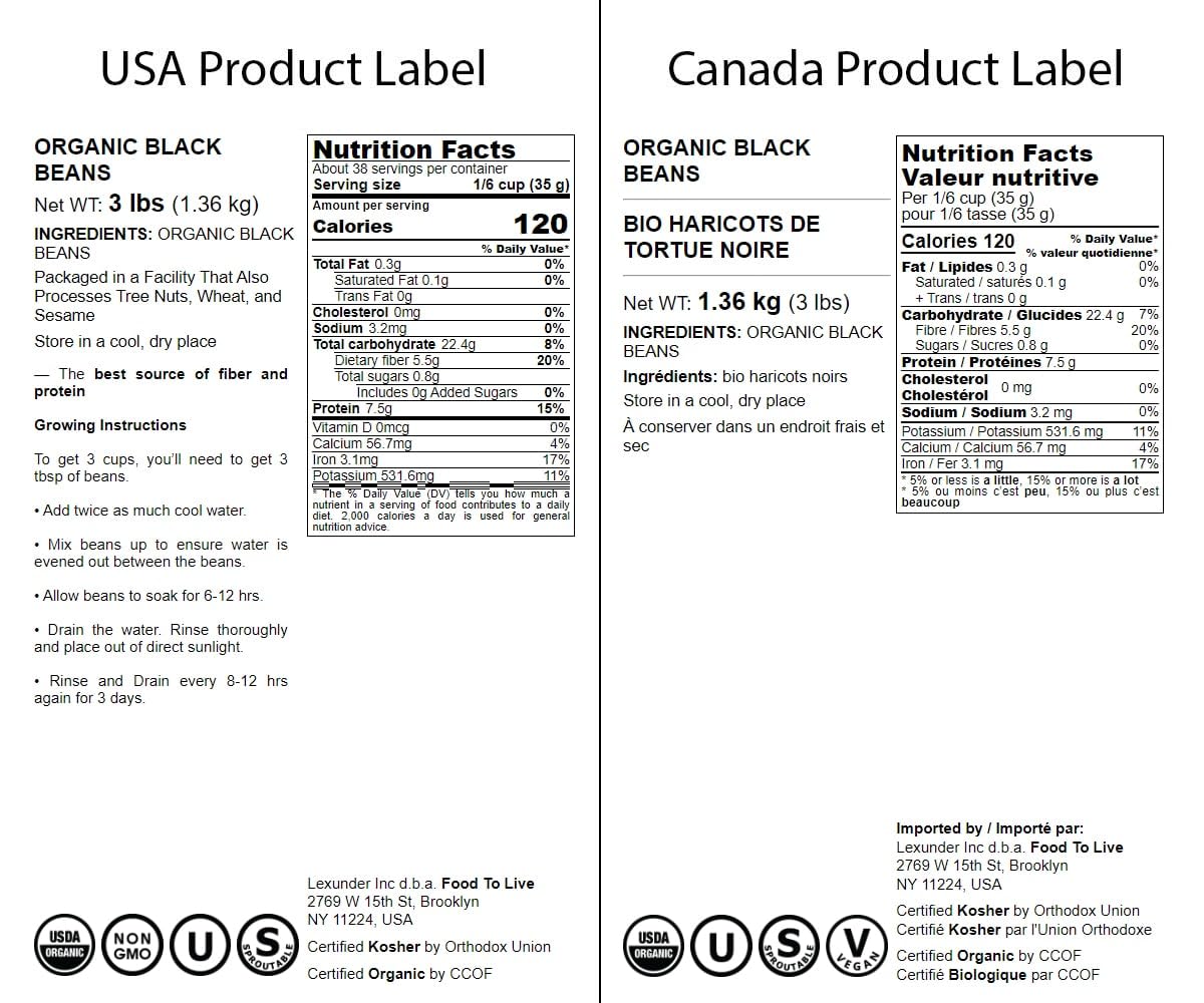 Food To Live - Organic Black Beans, 3 Pounds Non-Gmo, Whole Dried Beans, Sproutable, Vegan, Kosher, Bulk. Great Source Of Plant Based Protein, Fiber. Great For Bean Soup, Salads, Chili.