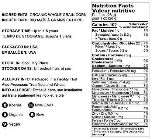 Q: What is Food to Live Organic Corn Flour made from?A: Food to Live Organic Corn Flour is made from finely milled whole maize kernels, ensuring that the maximum nutrients are preserved, making it a rich source of protein and dietary fiber.
