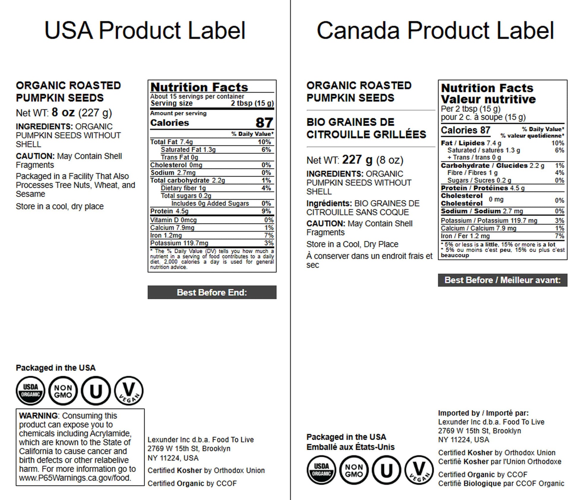• Q: What is the packaging of Food to Live Organic Pumpkin Seeds like? A: Food to Live Organic Dry Roasted Pumpkin Seed Kernels come in convenient resealable bags. This packaging helps to maintain freshness and allows you to easily take them with you as a nutritious snack for work, school, or outdoor activities.