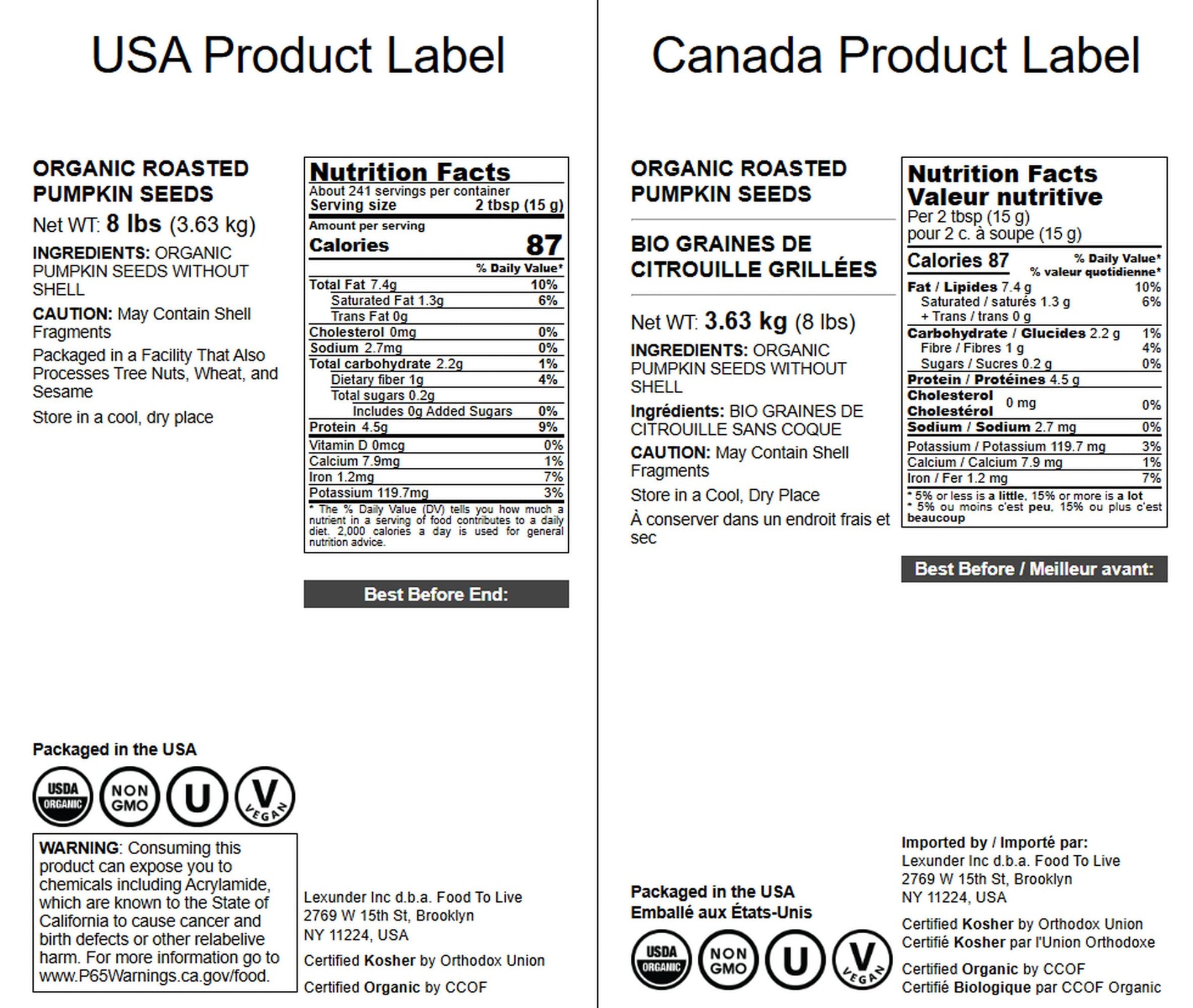 ?? ORGANIC & NON-GMO: These Roasted Pumpkin Seeds by Food to Live are USDA Organic, certified Kosher, Non-GMO, and don