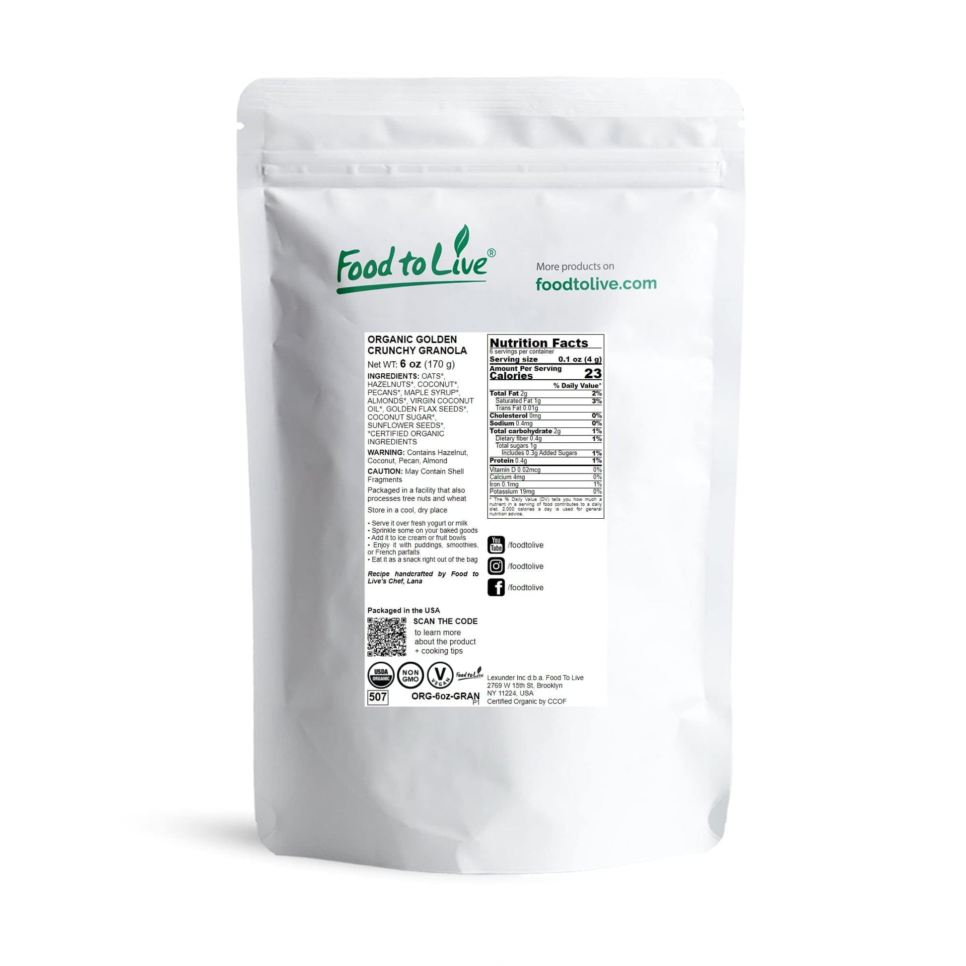 Food To Live Organic Golden Crunchy Granola, 6 Ounces - Small Batch, Handcrafted, Bulk, Great As Snack For Breakfast Cereals, Contains Hazelnuts, Pecan Nuts, Almonds, Coconut, Flax Sunflower Seeds