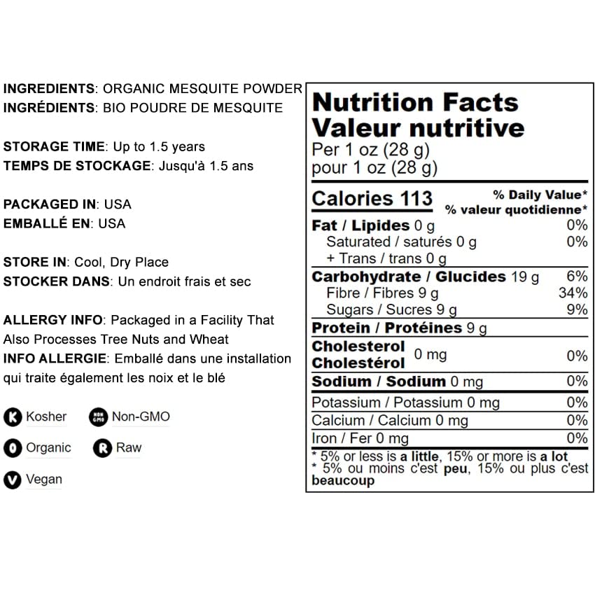 - Q: What are the nutritional benefits of using Food to Live Organic Mesquite Powder? A: Food to Live Organic Mesquite Powder is low in calories, fats, and sugar, making it an excellent sweetener for various diet plans. It is rich in proteins, providing a boost of amino acids, and is also a good source of essential minerals like iron, calcium, zinc, and potassium.