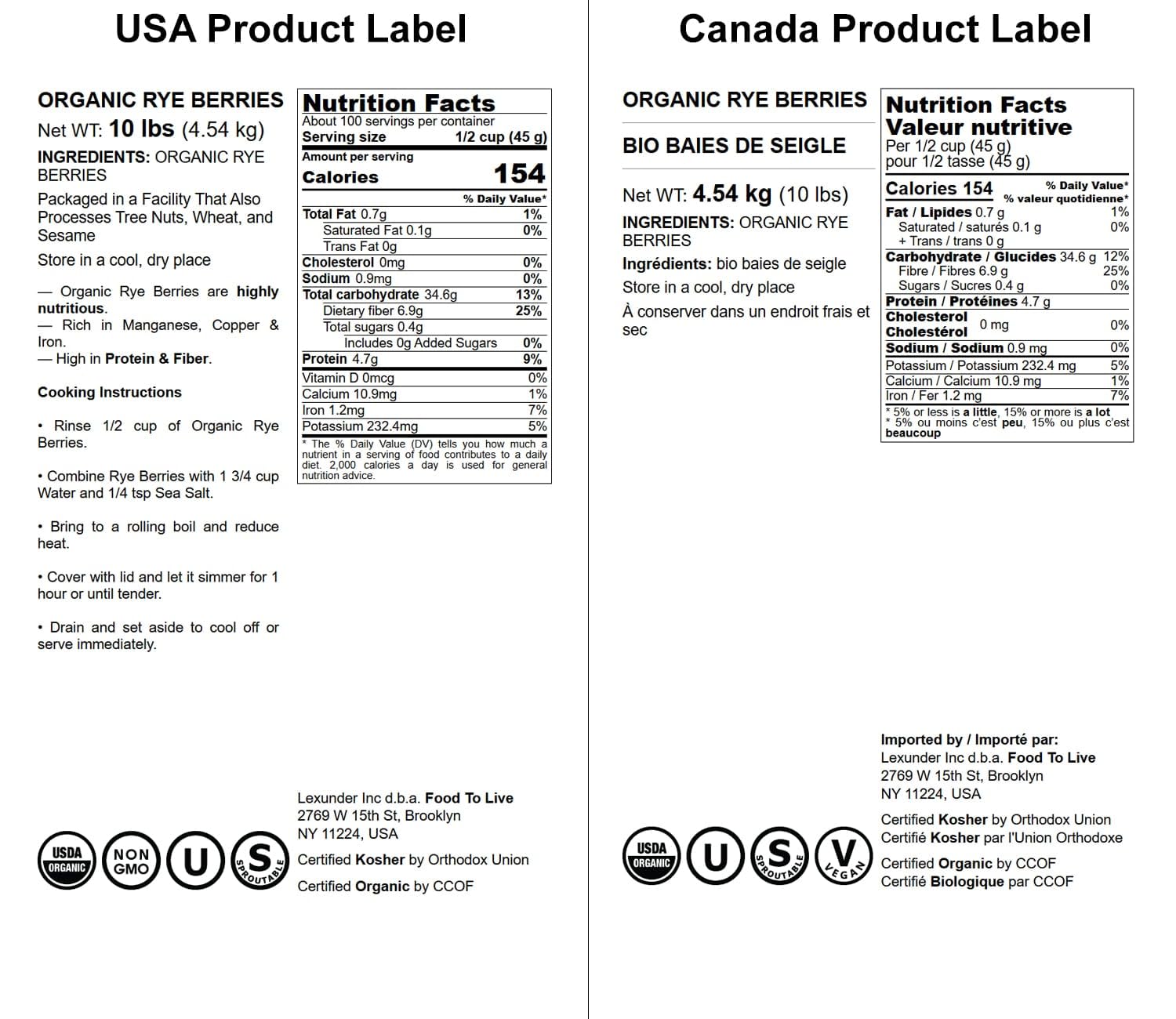 Discover the wholesome goodness of Organic Rye Berries from Food to Live, a versatile and nutritious grain option perfect for enhancing your meals. Ideal for health-conscious individuals, these ancient grains provide a rich source of dietary fiber and essential nutrients, making them a valuable addition to your pantry.