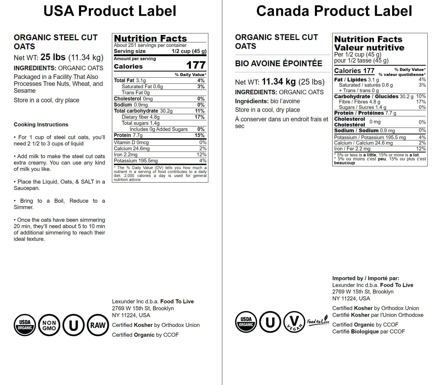 Q: What makes Food to Live Organic Steel Cut Oats different from regular oats?A: Food to Live Organic Steel Cut Oats are less processed than rolled or instant oats, which helps retain more of their nutritional value. They offer a heartier texture and nutty flavor, contributing to a filling and satisfying meal.