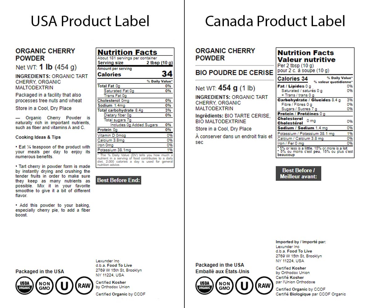 Food To Live Organic Tart Cherry Powder, 1 Pounds – Non-Gmo, Raw, Kosher, Vegan Superfood, Bulk, Rich In Antioxidants, Great For Juices, Drinks, And Smoothies, Contains Maltodextrin