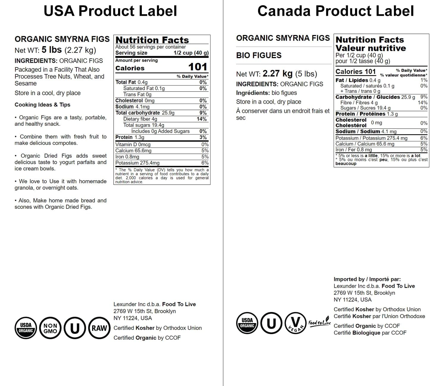 Organic Figs From Food To Live Are A Premium-Quality Product Created With Love And Care. We Purchase Our Figs Only From The Best Organic Farmers Who Carry The Necessary Certifications. The Fruits Are Dried And Processed Using Top-Of-The-Line Equipment That Allows Us To Preserve Their Delicious Flavor And High Nutritional Value. Nutritional Value Our Figs Are Rich In Dietary Fiber, Which Means They Are A Great Addition To Any Weight Loss Program. As They Are Delicious And Naturally Sweet, They Can Help You Deal With Annoying Sugar Cravings. The Fiber Ensures That You Lose Pounds While Eating Fruits Instead Of Gaining Extra Inches. Directions You Can Enjoy Food To Live Organic Figs In Many Different Ways. Add Them To Your Morning Bowl Of Porridge Or Use Them To Make Delicious Desserts. You Can Also Eat Them On Their Own As A Snack During The Day. This Product Is Processed In A Facility That Also Processes Tree Nuts And Wheat.