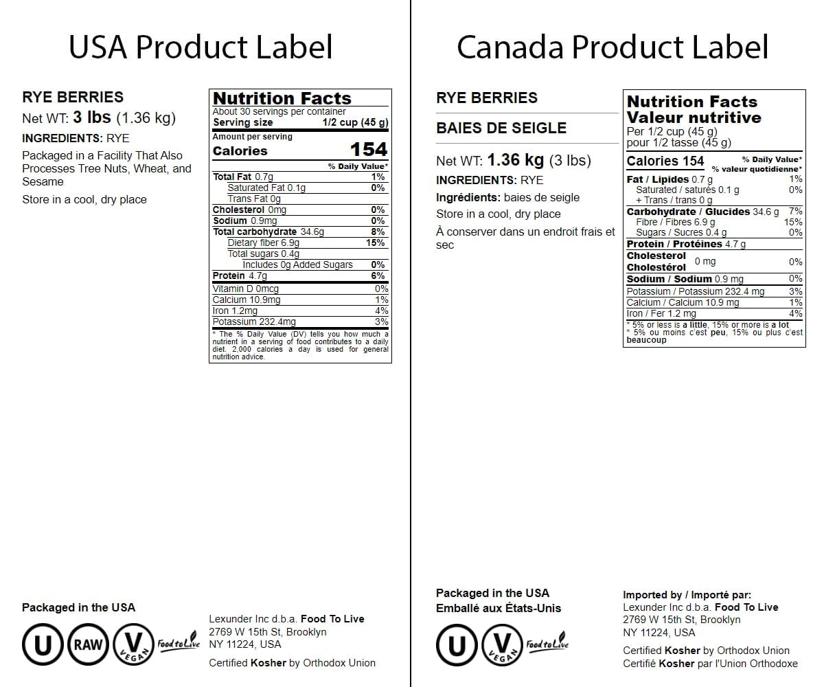 Rye Berries Are A Kind Of Wheat Thats Widely Used In Various Cuisines. Hulled Rye Berries By Food To Live Do Not Contain The Outer Shell But Have All Other Parts Of The Grain: Bran, Germ, And Endosperm Intact, Which Makes Them Whole-Grain. Are Rye Berries The Same As Rye Grain Yes, These Names Are Used Interchangeably. Our Hulled Rye Is Of Premium Quality, Kosher, 100% Raw, Vegan, And Available In Bulk. Are Rye Berries Good For You Now Lets Look Into What Are Rye Berries So Valued For. Well, First, Cooked Rye Berries Nutrition Profile Is Packed With Essential Macronutrients: Complex Carbohydrates, Dietary Fiber, And Plant Protein. Second, The Benefits Of Rye Berries Hulled Are Linked To Their High Content Of Lignans And Phenolic Compounds Which Act As Potent Antioxidants. Furthermore, Rye Is Loaded With Vitamin E, B-Group Vitamins, And Various Minerals Such As Magnesium, Iron, Phosphorus, Niacin, Potassium, And Zinc. At The Same Time, This Grain Is Pretty Low In Fat And Has A Moderate Calorie Count. What Do You Do With Rye Berries Hulled Rye Berries Have A Pleasant Sweet And Nutty Flavor And A Hearty, Chewy Bite. There Are Probably Endless Ideas On How To Eat Rye Berries. They Make A Wonderful Substitute For Breakfast Oatmeal And Go Well With Various Toppings: Fruits, Nuts, Honey, Or Maple Syrup. Besides, Hulled Rye Berries Can Be Served As A Side Dish, Similar To Rice: With Meats, Tofu, Stews, And Veggies. Apart From That, Cooled Rye Is A Great Addition To Salads, Soups, Smoothies, And Protein Shakes. Rye Berry-Stuffed Peppers, Rye Berry And Lentil Casserole, And Rye Berry And Chickpea Salad Can Become Your New Favorite Dinner Recipes! Another Popular Recipe That Features This Grain Is Blueberry Rye Bread. Rye Bread Is A Delicious And More Nutritious Alternative To Usual White Bread. Considering Such Versatility Of This Grain, Its A Good Idea To Get Food To Lives Budget-Friendly Bulk Rye Berries Bag.