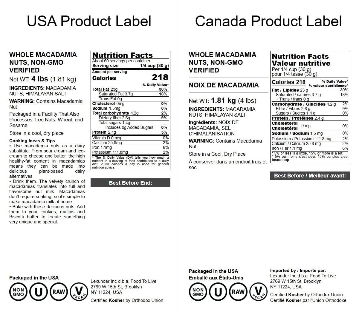 ?? NON-GMO VERIFIED & KOSHER: These whole Macadamia Nuts by Food to Live are Non-GMO Verified, 100 % Raw, Kosher, Vegan and do not contain trans-fat and cholesterol. | ?? HIGHLY NUTRITIOUS: Macadamia Nuts are loaded with dietary fiber, plant protein, good fats, potent antioxidants, vitamins and essential minerals like Manganese, Thiamine, Copper, Magnesium, Iron, ?alcium, Niacin, and Folate. | ?? KETO & PALEO SNACK: These nuts make a perfect grab-n-go snack that you can munch on during work, hike, walk, picnic, a plane ride or a movie night. Besides, they are suitable for those who follow Keto and Paleo diets. | ?? VERSATILE USES, GREAT FOR BAKING: Use Macadamia nuts to top your oatmeal, cereals, avocado toasts, smoothies, pasta, salads, and ice cream. Moreover, they are a perfect pastry ingredient that pairs especially well with chocolate. | ?? HANDY PACKAGING: Macadamia Nuts by Food to Live are conveniently packaged in resealable bags that you can just throw in a bag and snack on during the day.
