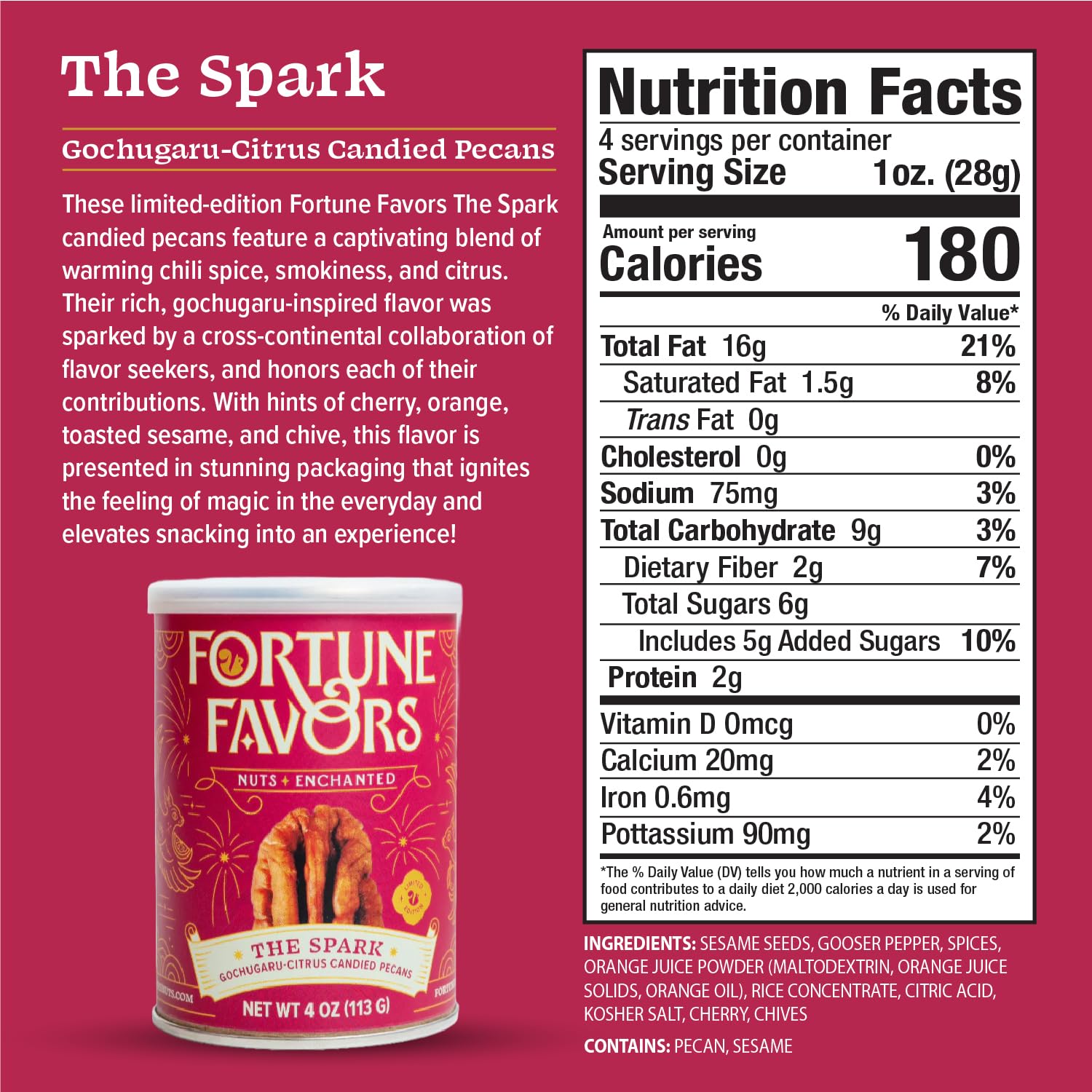 Q: Can I use Fortune Favors Candied Pecans in my baking recipes?A: Absolutely! Fortune Favors Candied Pecans make a delightful addition to various baking recipes, adding a sweet and salty crunch to cookies, cakes, and even salads.