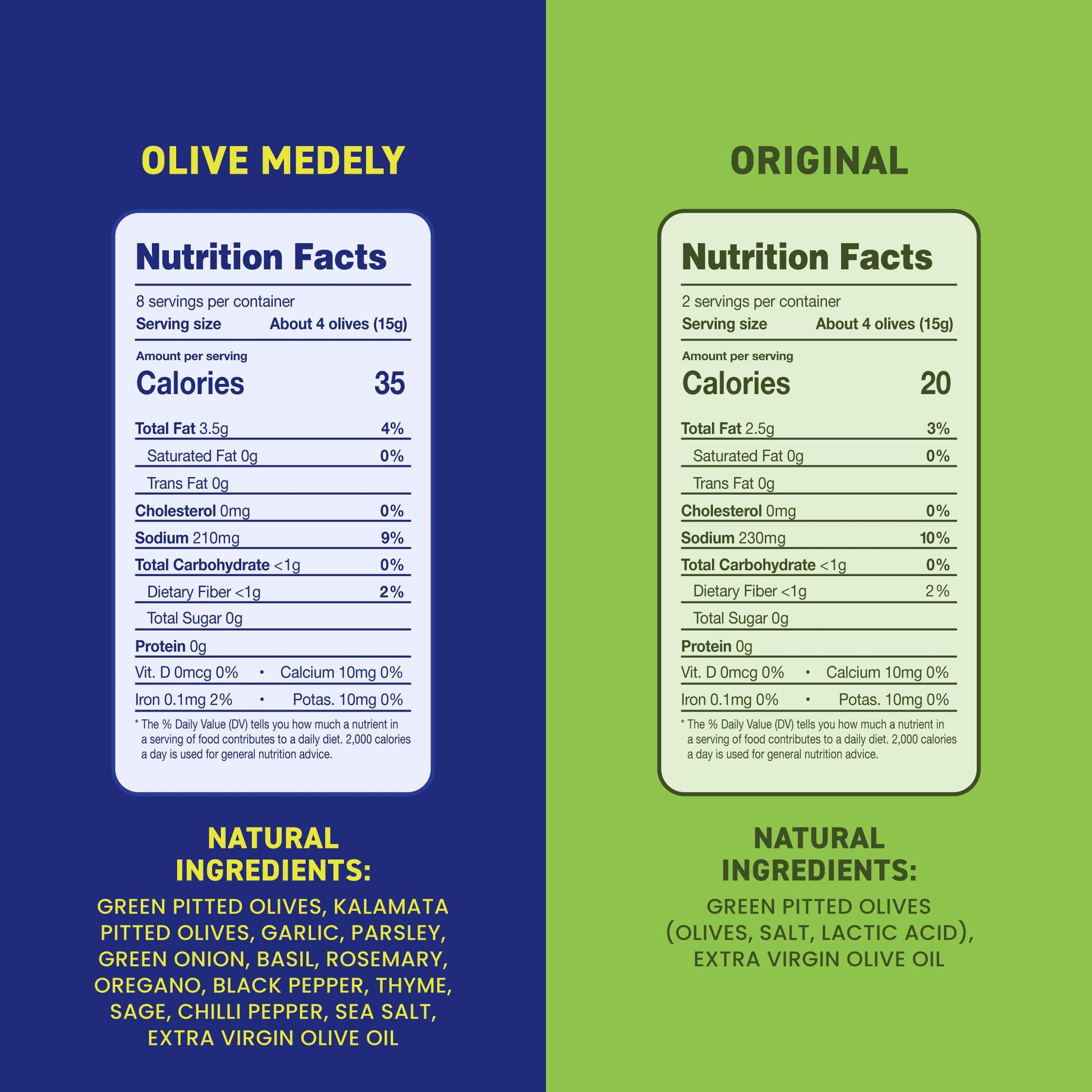 Q: What flavors are included in the Freestyle Snacks Olive Snack Pack?A: The Freestyle Snacks Olive Snack Pack features five unique flavors, each carefully marinated to enhance the natural taste of the olives. Enjoy the variety and discover your favorite flavor!