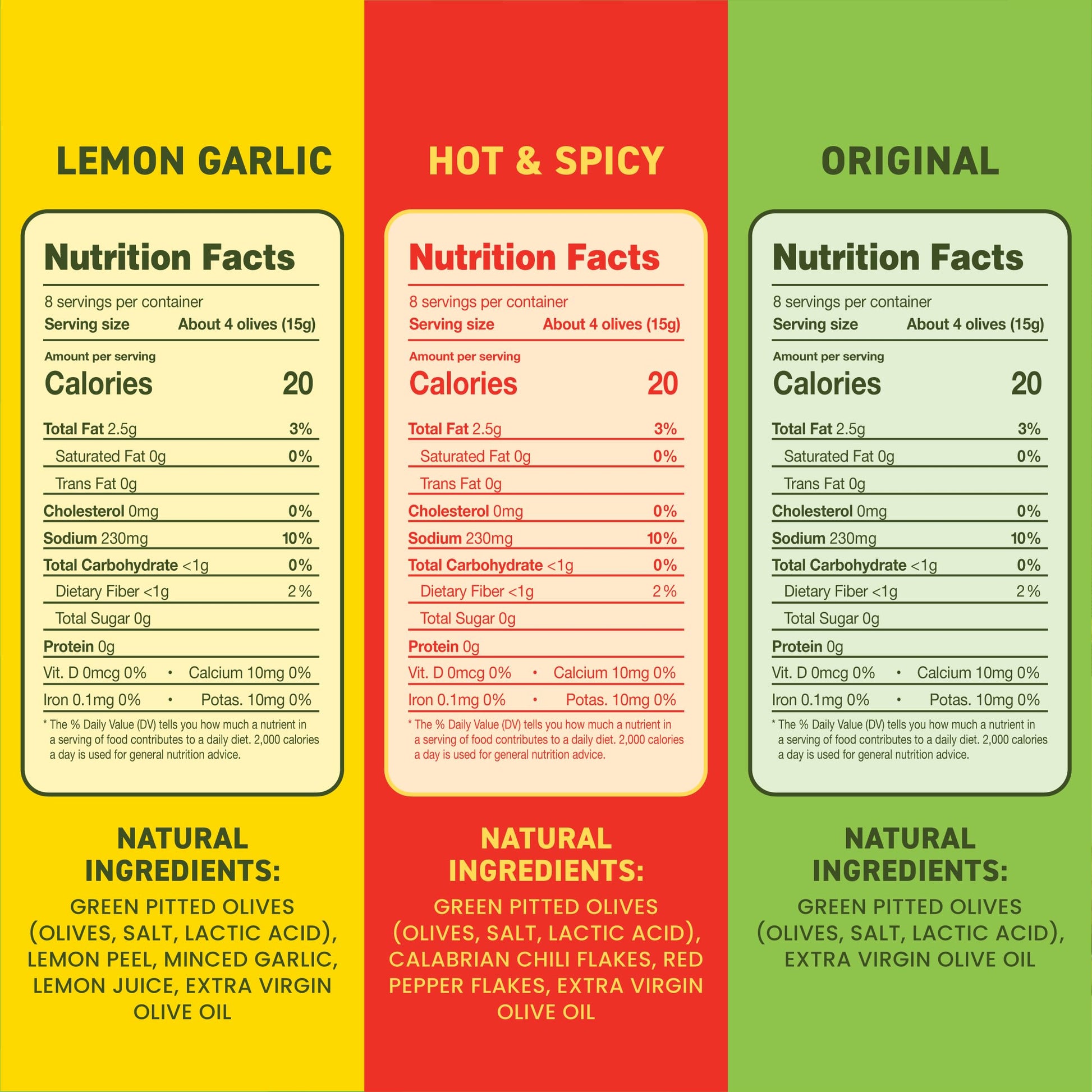 Q: What makes these olives different from regular olives?A: Freestyle Snacks Olive Snack Packs are marinated for enhanced flavor and come in resealable, liquid-free pouches, providing a unique and mess-free snacking experience. They are also crafted with high-quality ingredients sourced from Greece.