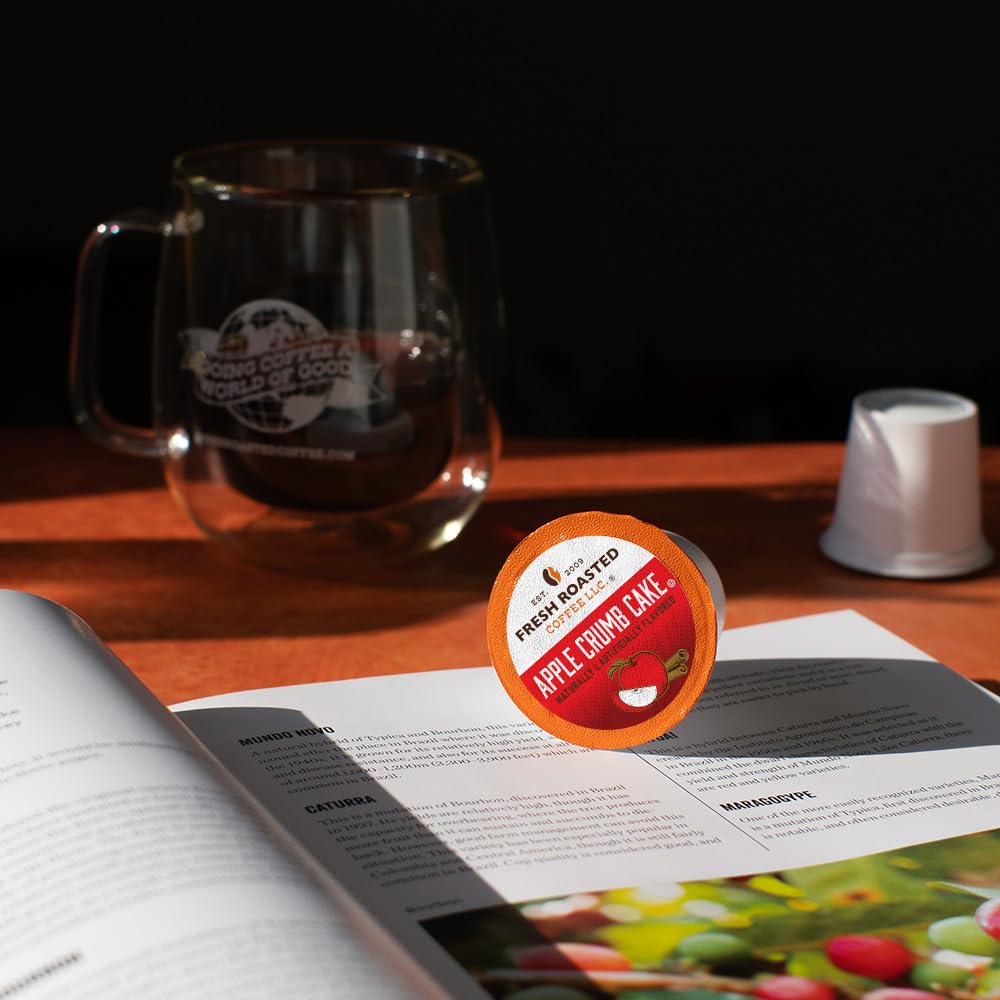 Limited Edition Take The Sweet Flavor Of Autumn'S Finest Fruit, Add Some Cinnamon Spice, Brown Sugar, And Buttery Richness And What Do You Get Our Limited Edition Apple Crumb Cake Flavored Coffee, That'S What! This New Fall Flavor Is Sure To Become A Favorite So Get It Before It'S Gone! We'Ve Taken Fresh Roasted To The Next Level Of Flavor - Introducing Fresh Roasted Flavored Coffee! Each Bag Is Filled With Fresh Roasted Coffee And Natural And Artificial Flavors - Nothing Else. Every Variety Is Sugar Free And Full Of Flavor. And Just Like Our Regular Coffee, Each And Every Pod Is Nitrogen Flushed To Maximize Freshness. This Single-Serve Coffee Is Compatible With Many Popular K-Cup Brewing Systems, Including 2.0, And K-Supreme. Keurig, K-Cup, And K-Supreme Are Registered Trademarks Of Keurig Dr Pepper Inc. Fresh Roasted Coffee Llc Is Neither Affiliated With Nor Approved By Keurig Dr Pepper Inc.