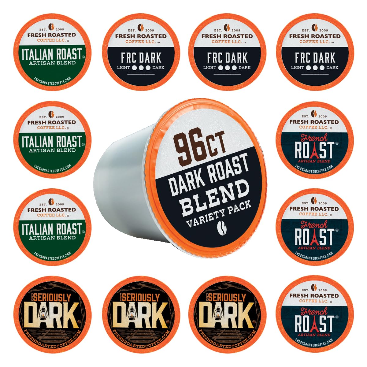 - Q: What flavors are included in the Fresh Roasted Coffee Dark Roast Blend Variety Pack? A: The Fresh Roasted Coffee Dark Roast Blend Variety Pack includes four rich flavors: Seriously Dark Roast, FRC Signature Dark Roast, French Roast, and Italian Roast. Each pod is crafted to deliver a robust and satisfying coffee experience.