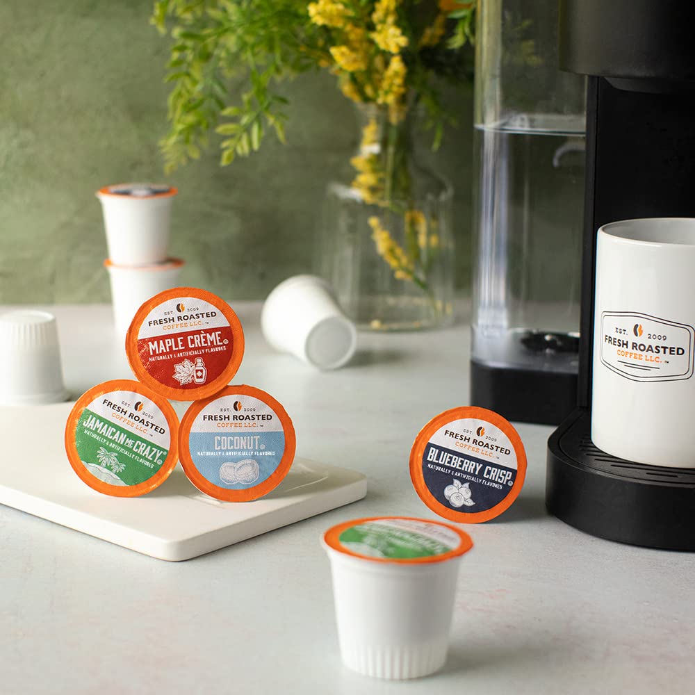 We'Ve Taken Fresh Roasted To The Next Level Of Flavor - Introducing Fresh Roasted Flavored Coffee Pods! Each Coffee Pod Is Filled With Fresh Roasted Coffee And Our Own Special Flavors - Nothing Else. Every Variety Is Sugar-Free And Full Of Flavor. And Just Like Our Regular Coffee Pods, Each Pod Is Nitrogen Flushed To Maximize Freshness. The Great Eight Variety Pack Features All Our Traditional Flavors As Well As Our Fun Flavors! Contains 6 Pods Each Of Caramel, Hazelnut, Mocha, And Vanilla, Jamaican Me Crazy, Coconut, Blueberry Crisp, Maple Crme.