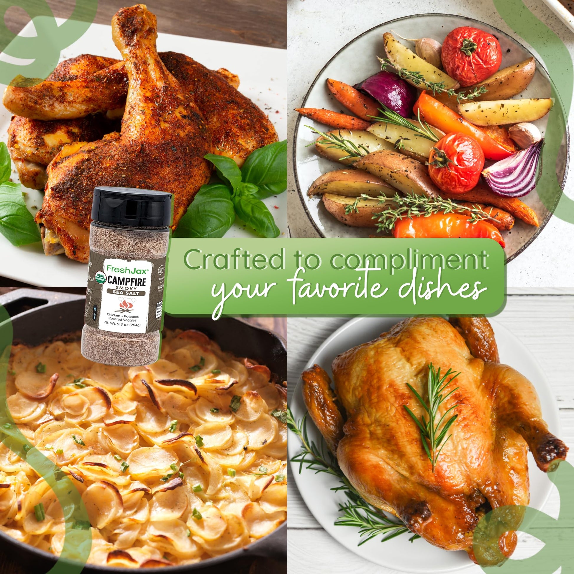 - Q: What is FreshJax Organic Campfire Smokey Sea Salt made of? A: FreshJax Organic Campfire Smokey Sea Salt is a blend of organic sea salt, smoked cherrywood sea salt, and organic chipotle pepper. This combination creates a savory and smoky flavor profile that enhances various dishes.