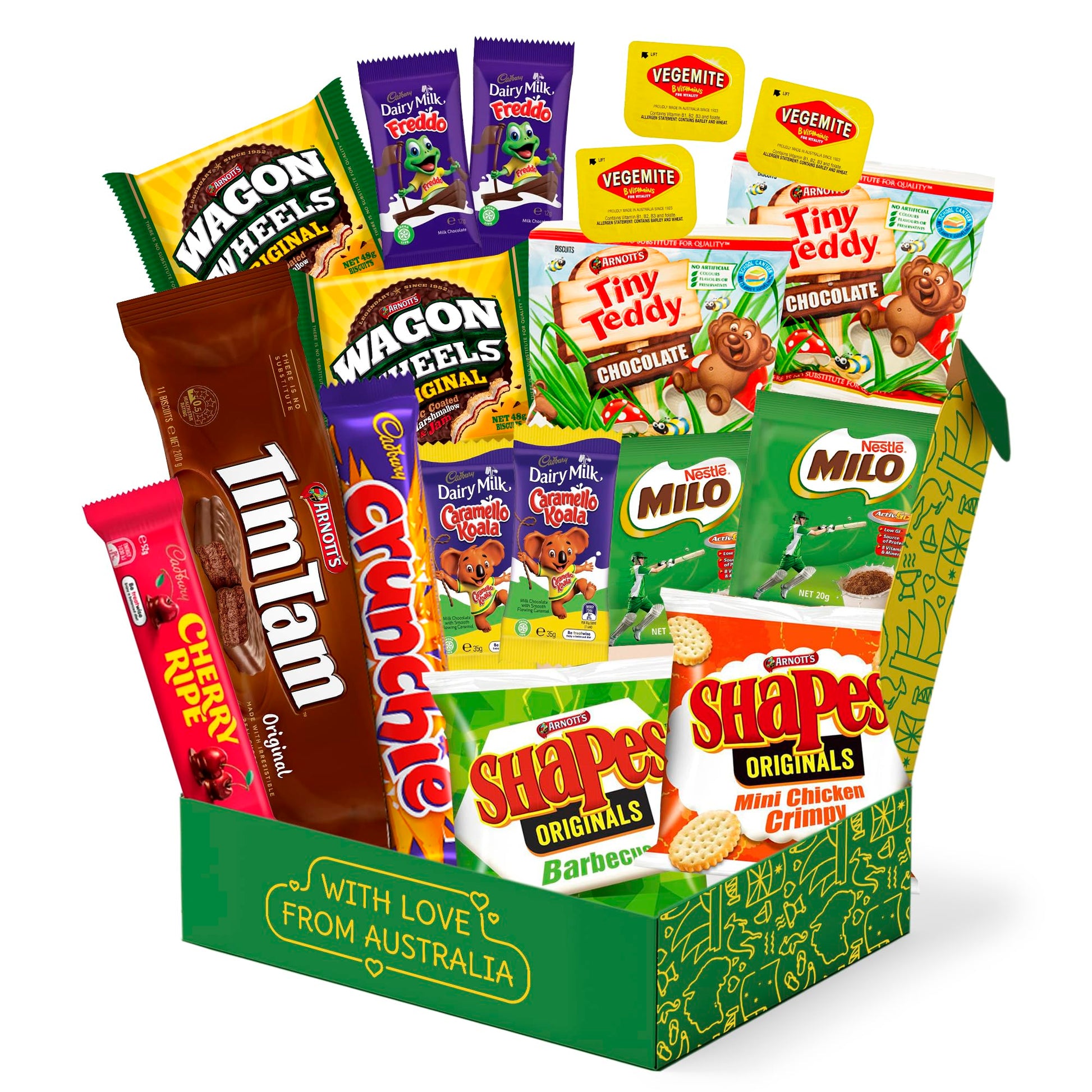 Key Features:- Authentic Australian Delights: Enjoy a rich variety of iconic snacks and candies, including Tim Tams, biscuits, Cadbury chocolates, and Cherry Ripe bars.