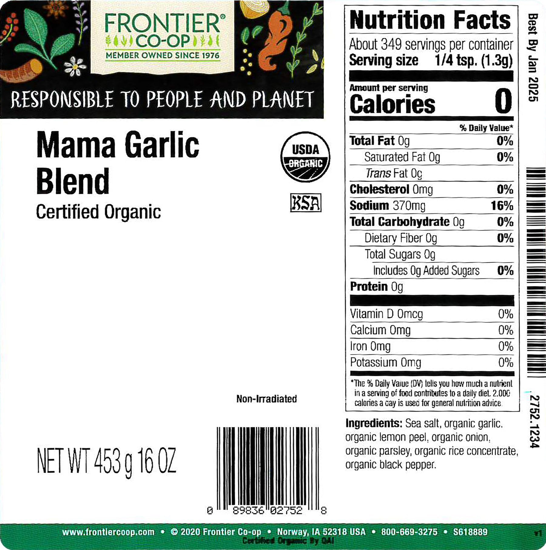 - Q: Does Frontier Co-op Mama Garlic seasoning contain any allergens? A: Frontier Co-op Mama Garlic seasoning is made from simple ingredients and does not typically contain common allergens, but it is always advisable to check the packaging for specific allergen information.