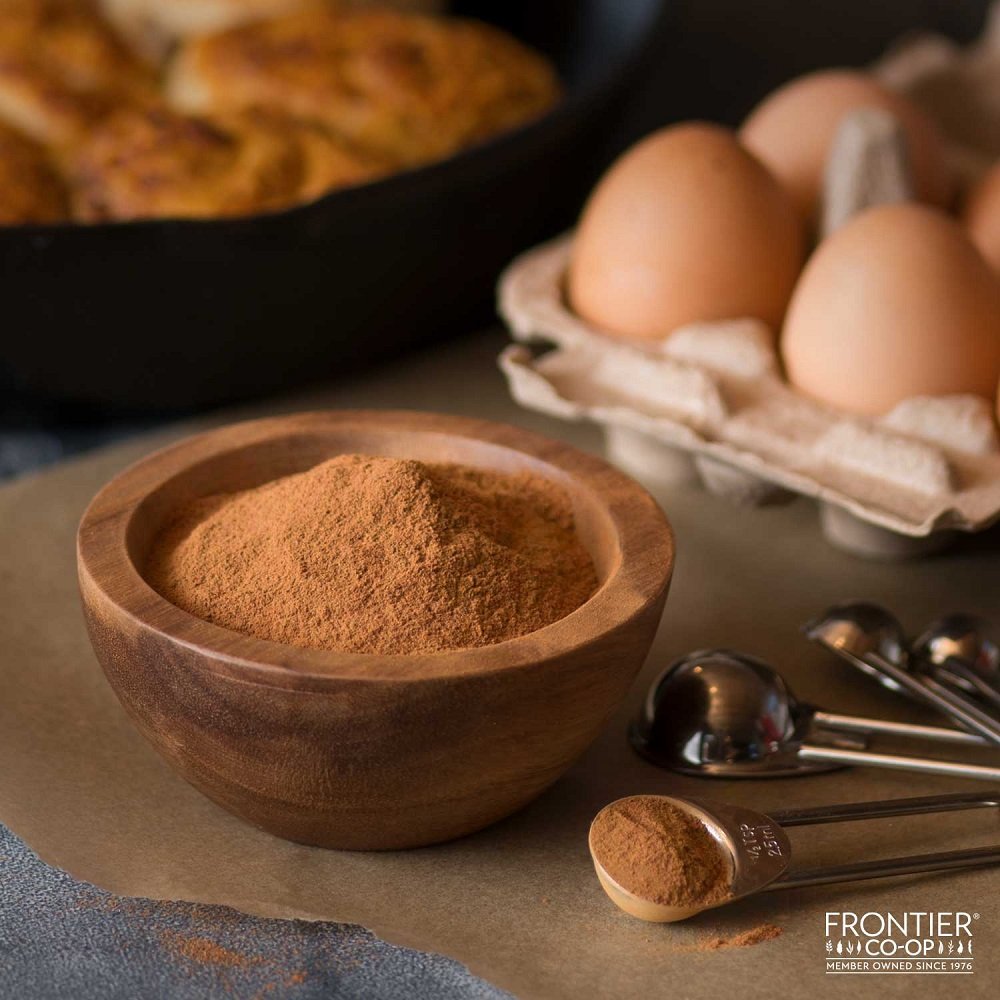 The most commonly found cinnamon in American kitchens is Indonesian cassia. It is sourced from higher elevations and is harvested a bit earlier than Chinese and Vietnamese cinnamons. Korintje translates as thick quill and is judged for quality based on the part of the tree that is harvested (trunk vs. branch) and on the length of the bark peeled from the tree. Frontier Co-op Korintje Cinnamon is a high-quality cinnamon that is full, balanced, spicy with intense heat and sweetness. For added sweetness, try a pinch of cinnamon in baked goods like pies, rolls, breads, cookies or even savories.