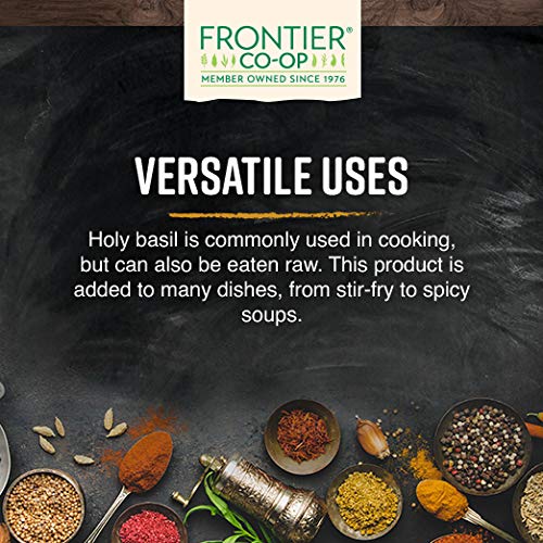 Discover The Exceptional Quality And Versatility Of Frontier Co-Op Organic Tulsi Holy Basil Herb, Botanically Known As Ocimum Sanctum. Sourced From The Finest Organic Farms In The Usa, Our Holy Basil Is Also Known As Tulsi, Is A Testament To Purity, Flavor, And Aroma. We Carefully Dry And Cut The Holy Basil Leaves So This Herb Retains Its Natural Essence, Delivering A Light Minty Flavor With A Slight Clove-Like Taste.Holy Basil Is Revered As The ''Queen Of Herbs'' In Ayurveda And Is Rich In Antioxidants And Essential Oils, Offering Numerous Health Benefits. It Supports Immune Function And Enhances Mental Clarity. Traditionally Used To Aid Digestion, Support Respiratory Health, And Promote Healthy Skin, Holy Basil Is A Versatile Herb For Overall Wellness.Organic Holy Basil Is Highly Versatile And Ideal For Making Tulsi Tea Organic, Known For Its Calming And Restorative Properties. Simply Steep The Herb To Create A Soothing Beverage That Promotes Relaxation. Its Also Valuable In Herbal Remedies, Tinctures, And Infusions. In Cooking, Tulsi Herb Enhances Both Sweet And Savory Dishes With Its Light, Minty Flavor And A Hint Of Clove. Add It To Stir-Fries, Soups, Sauces, Or Enjoy Frontier Holy Basil Raw In Salads To Elevate Taste And Aroma. Holy Basil Pairs Well With Meats And Seafood, Adding Depth To Your Meals.Features:1/2 Pound Bulk Bag (8 Ounces)Organickosherall-Naturalnon-Irradiatednon-Eto