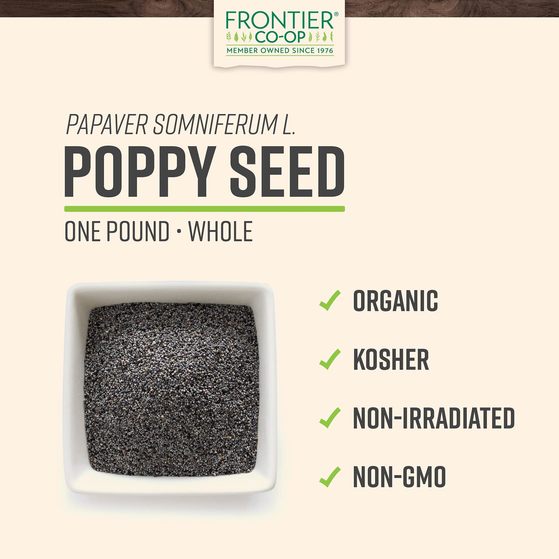 Frontier Co-Op Poppy Seed Whole, Certified Organic, Kosher | 1 Lb. Bulk Bag | Papaver Somniferum L.