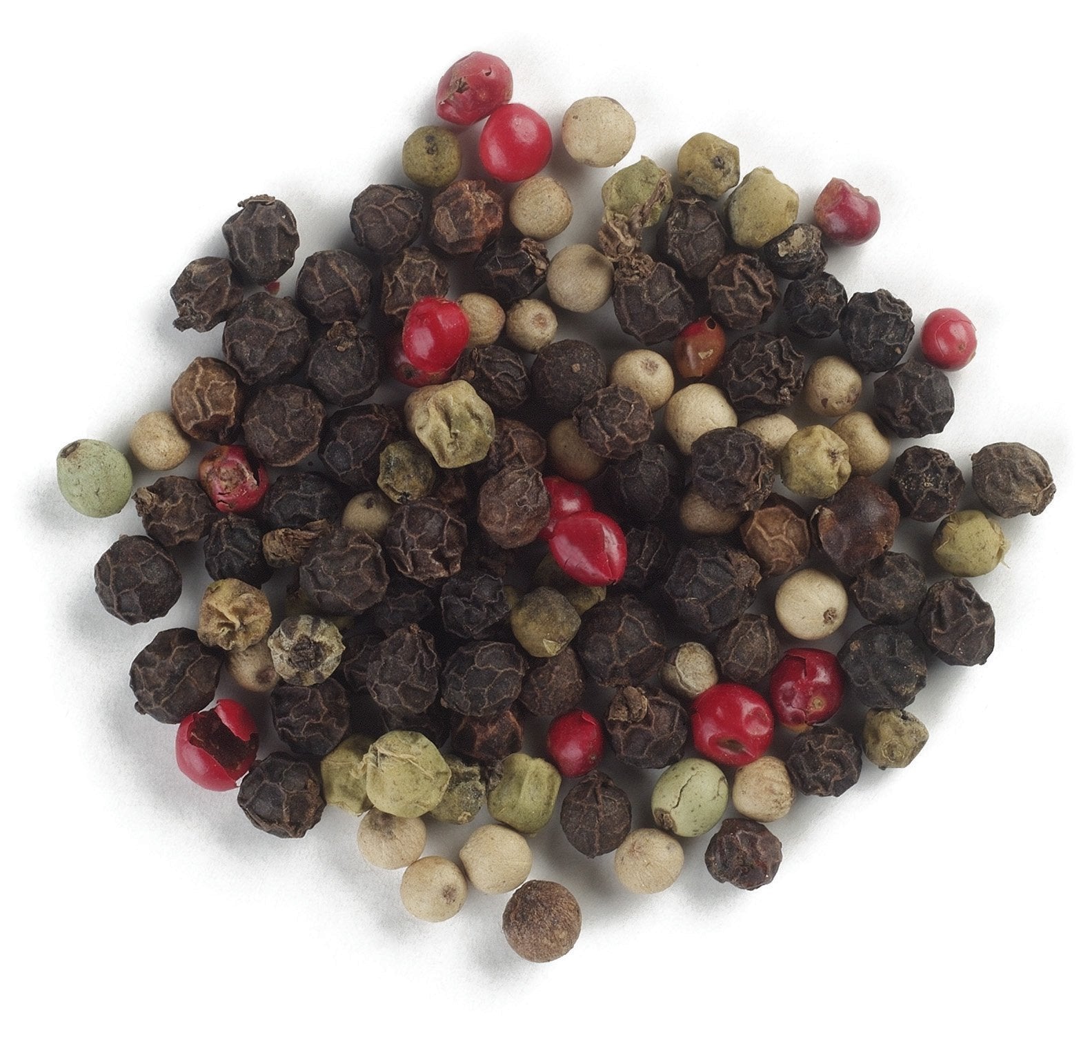 Frontier Co-op Gourmet 4-Pepper Peppermill blend is a distinct combination of black, white, green and pink peppercorns. While it is not a black pepper replacement, it still yields a peppery, spicy, and sweet flavor to any dish. It also adds color and texture to any prepared food. Our 4-pepper blend is grindable for additional cooking uses too! Rub some ground peppercorns into meat before grilling, or sprinkle it on chicken before baking. Our 4-pepper peppermill blend is 100% non-irradiated and Kosher certified.