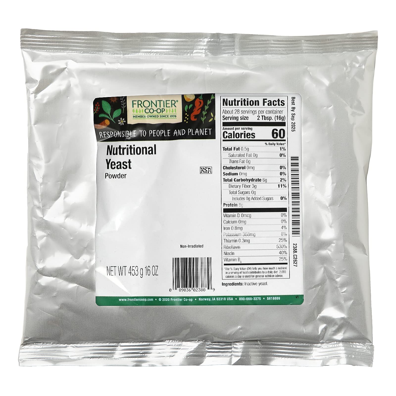 Frontier Co-op Nutritional Yeast Powder is a high-quality ingredient grown on a combination of enriched cane and beet molasses. It is popular for its obvious resemblance to parmesan cheese, which makes it a suitable cheese replacement.