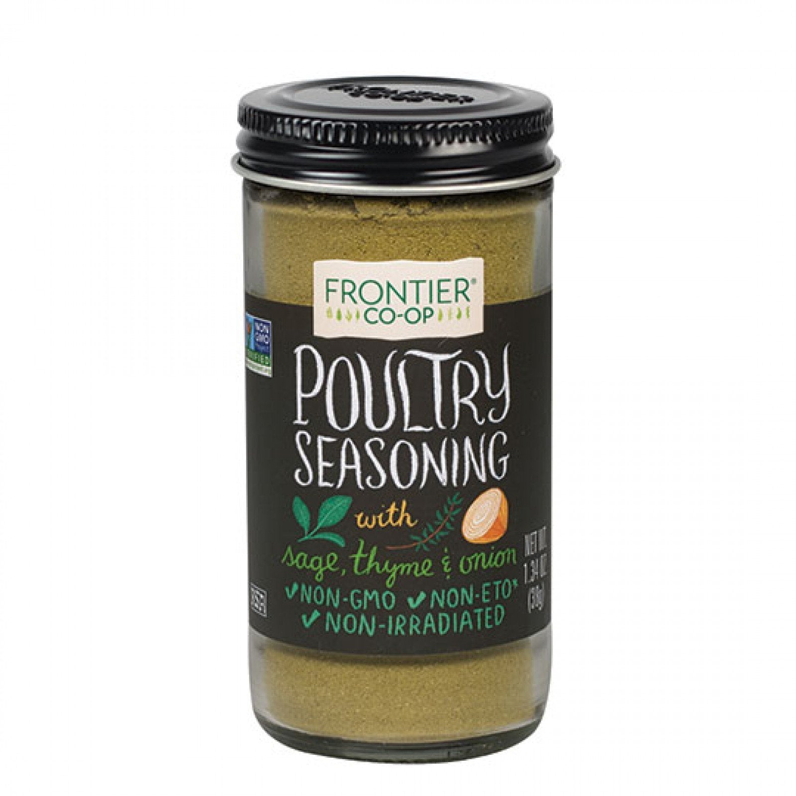 Q: Is this seasoning blend non-irradiated?A: Yes, Frontier Herb Poultry Seasoning is non-irradiated, preserving the natural flavors and quality of the herbs and spices included in the blend.