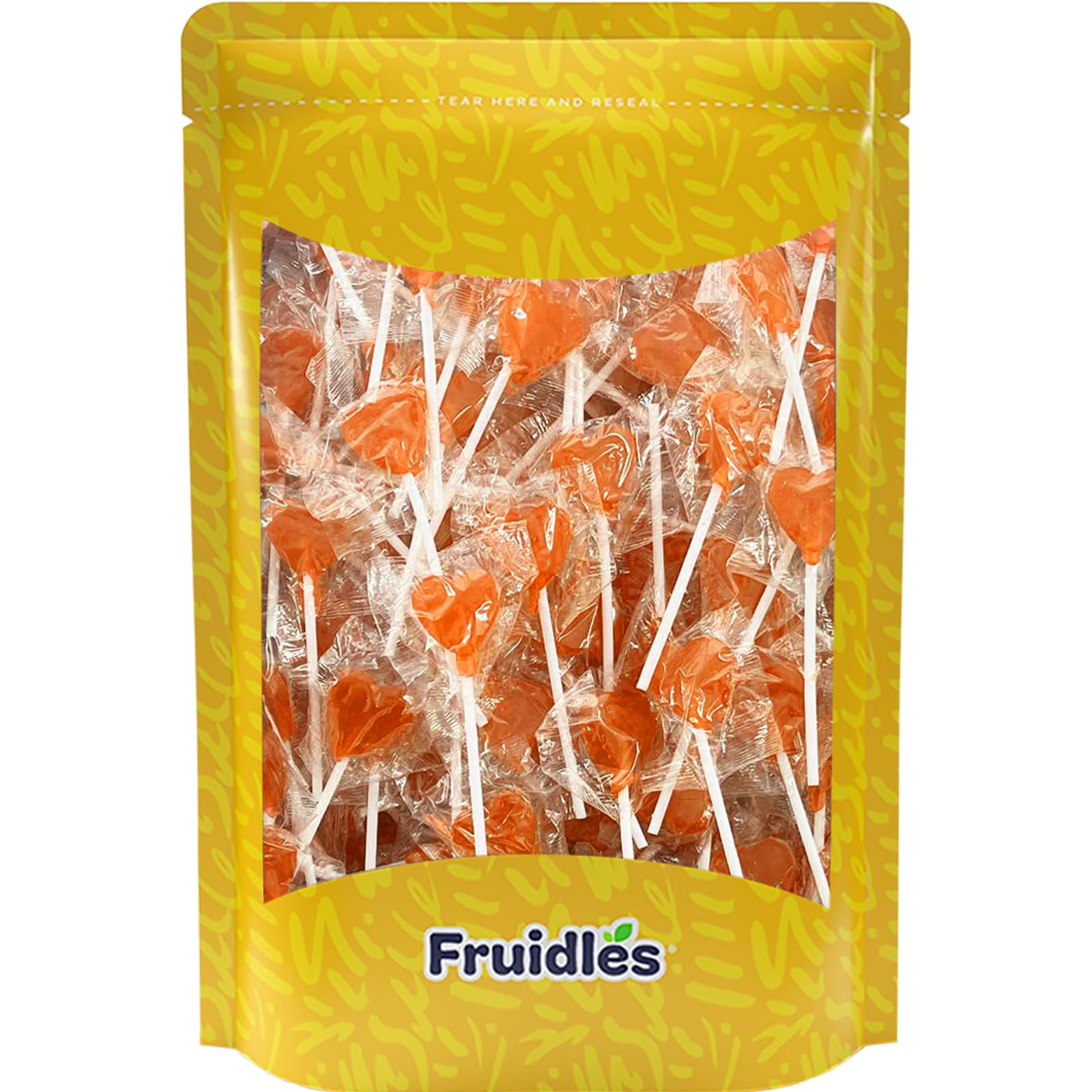 Q: What flavors are available in Fruidles Mini Heart Shaped Lollipops?A: Fruidles Mini Heart Shaped Lollipops come in a variety of delicious flavors including Orange, Raspberry, Fruit Punch, Grape, Green Apple, Lemon, Strawberry, Mixed Flavor Assorted, and Strawberry & Cream.