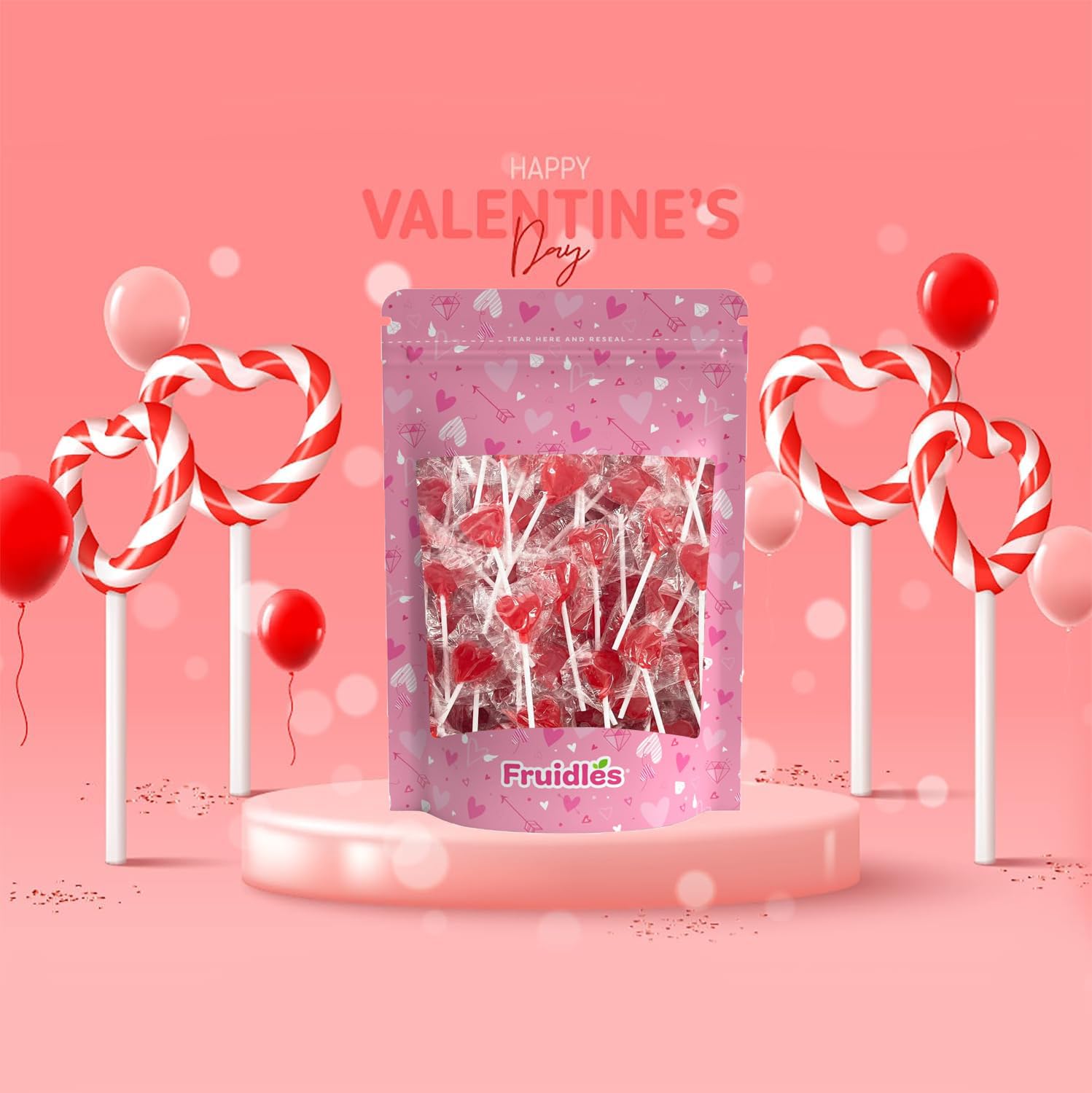 Q: Is there a satisfaction guarantee for this product?A: Yes, Fruidles offers a 100% money-back guarantee. If you are not satisfied with the Valentine's Heart Lollipops, you can request a replacement or a full refund.
