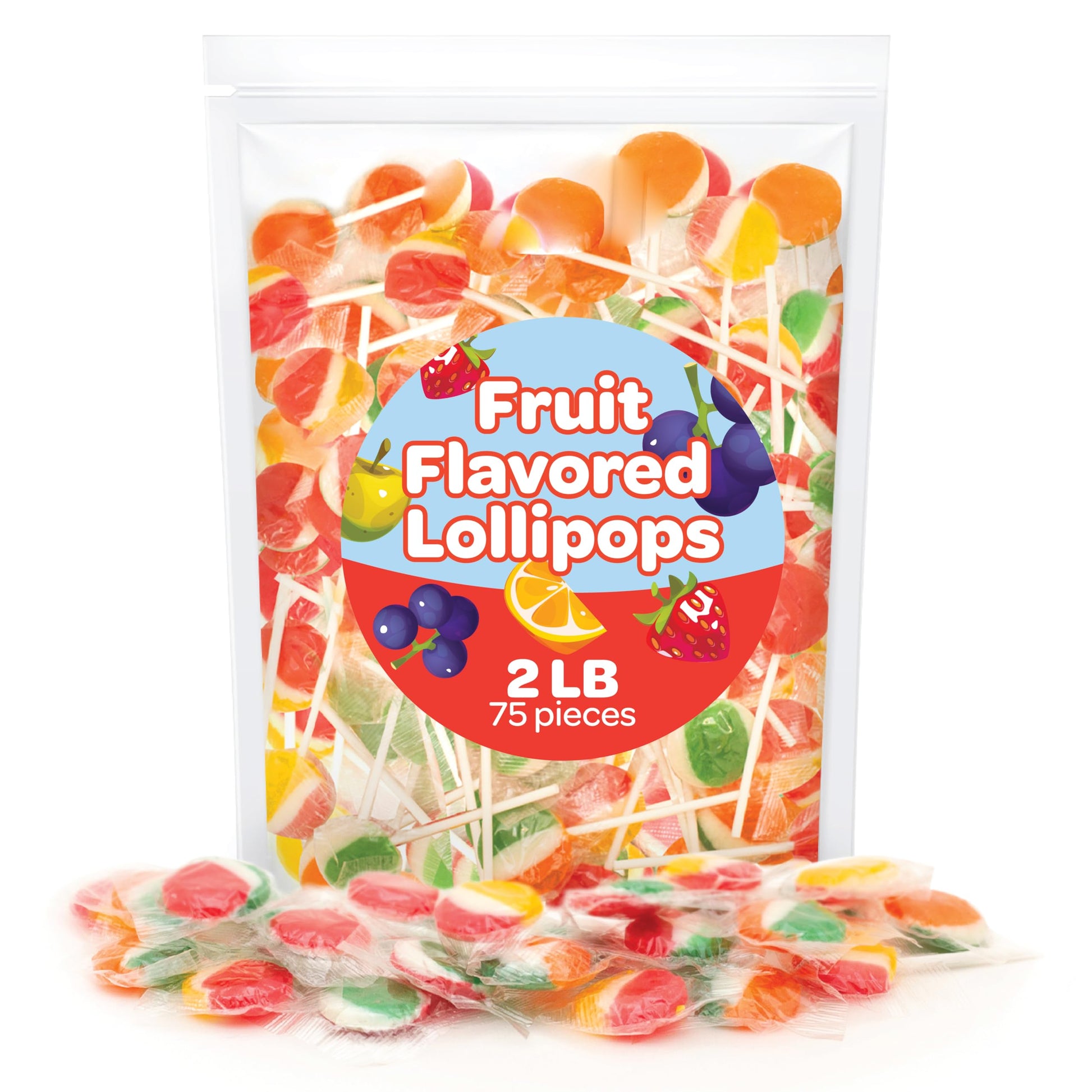 Q: How many lollipops are included in the 2-pound bulk pack?A: The 2-pound bulk pack contains approximately 80 pieces of flat fruit-flavored lollipops, making it an ideal choice for parties and gatherings.