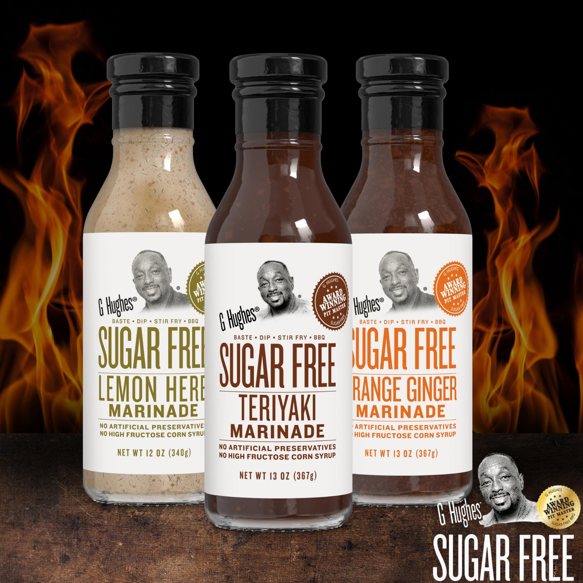 G Hughes Assorted Sugar Free Marinades(1) Lemon Herb 12oz bottle (1) Teriyaki 12oz bottle and (1) Orange Ginger 12oz bottle