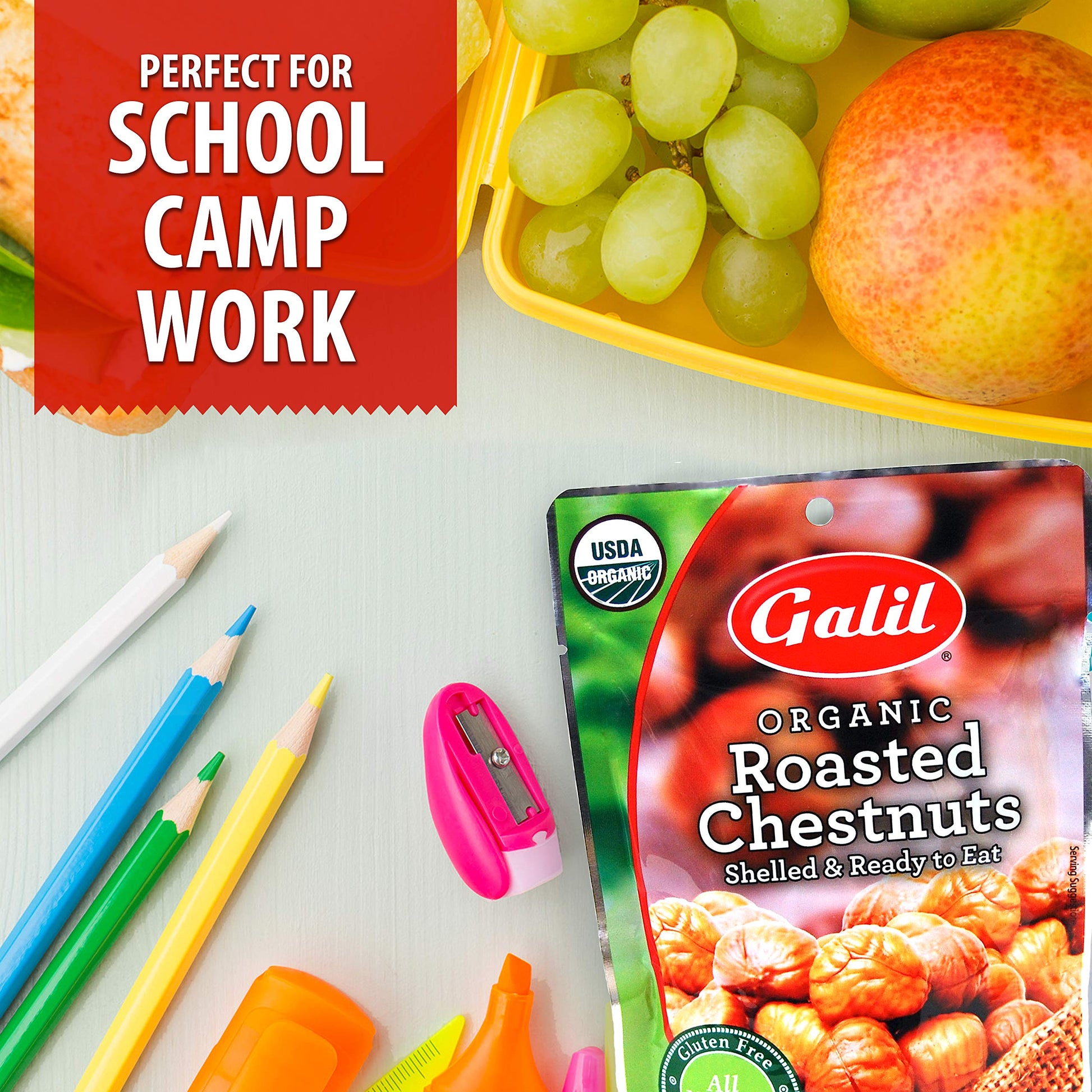 Galil Organic Roasted Chestnuts - 3.5 Oz Bags (Pack Of 6) - Shelled - Ready To Eat Snack, Gluten Free, All Natural, No Preservatives - Great For Snacking, Baking & Cooking - 100% Vegan