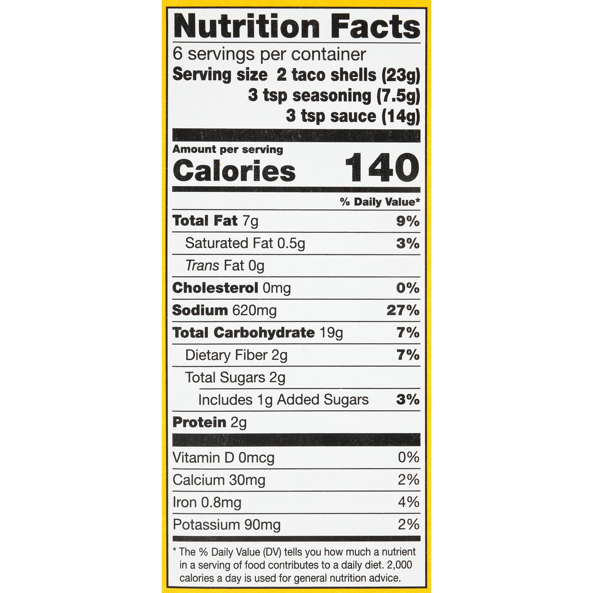 Q: What is the serving size for Garden of Eatin' Yellow Corn Taco Shells?A: The Garden of Eatin' Yellow Corn Taco Shells come in a dinner kit containing 12 taco shells, with a total weight of 9.4 ounces, making it perfect for a family meal.
